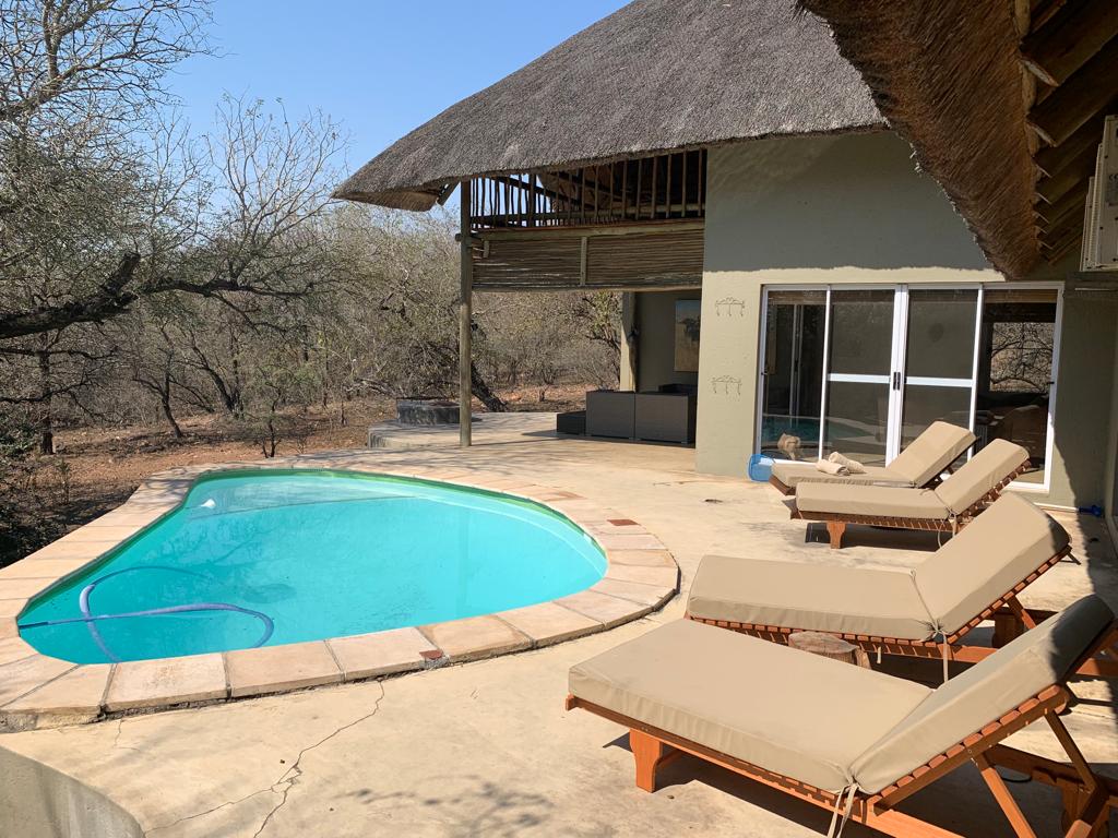 The Wild Bunch Safari House is a special place where the animals roam freely around the house! This detached self-catering house is decorated in African style with a stunning swimming pool (depth 1.6m+martini seat) integrated in the "stoep" (veranda). Attached is an outside (tree) shower and of course a large african braai and firepit. The House also has a Back Up system to help through the dark hours of Loadshedding in SA. Just 20 min from the Crocodile Bridge Gate at Kruger National Park.