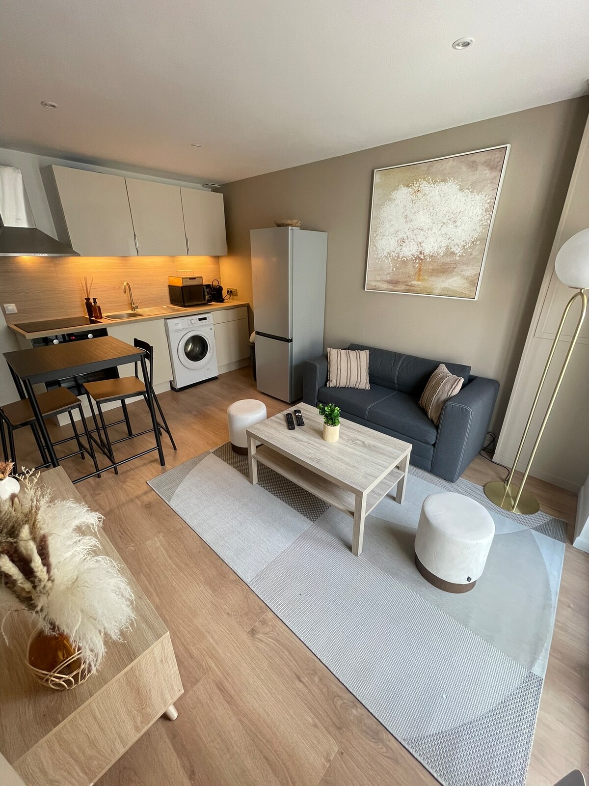Détendez-vous dans ce logement calme et décoré avec soin. Un petit havre de paix pour profiter d’un moment agréable à deux ou en famille. Un salon cosy avec canapé convertible, une grande chambre, une cuisine équipée, une salle de bain avec douche à l’italienne, une laverie et surtout une deuxième salle à l’étage avec une sublime baignoire balnéo de deux personnes avec jets et système hydro massant pour un moment relaxant.