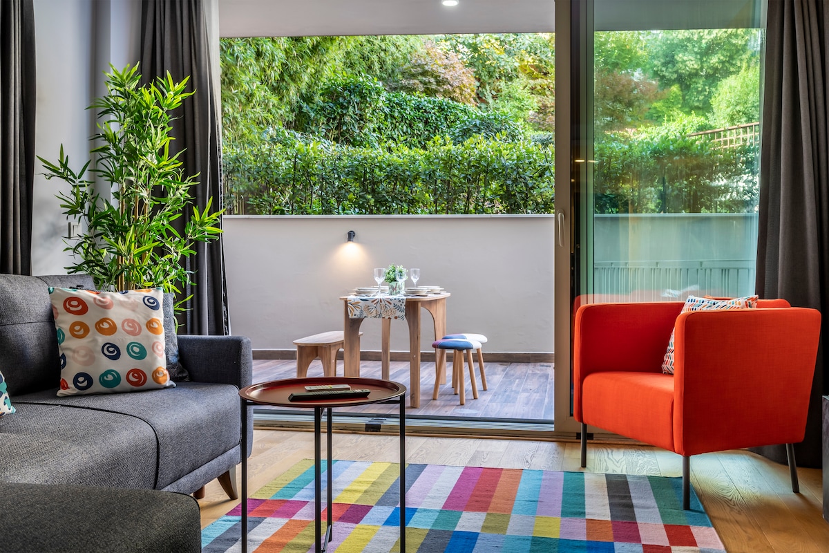 The apartment welcomes you with it's relaxing interior and spectacular Historical Peninsula view. This amazing sight becomes even more magical from the balcony every season and every hour of the day.All the furnitures are chosen from exclusive design brands and aiming to make you feel comfortable in a luxury zone. The turquoise tiles are handmade gives the personality to this magical living space. The walls has a beautiful harmony with again beautiful custom made floor tiles.