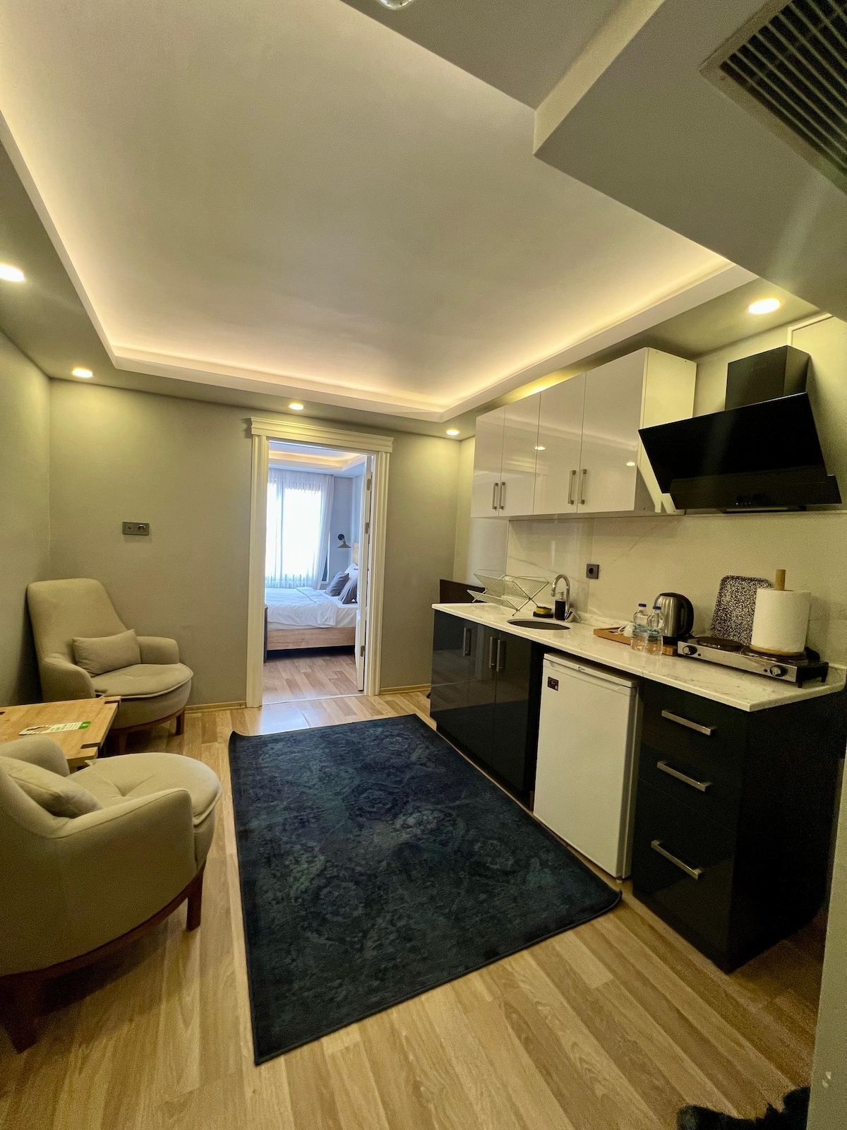 You will not be far from the comfort of your home during your stay in this apartment, which have bedroom, living room, full kitchenette, bathroom, which is located on the main street in the center of the famous Sisli area. In this apartment located in our hotel we have a reception desk at your service 7/24 . The entire hotel is monitored by a camera security system that operates 24 hours a day, 7 days a week. We also have an elevator in the building that can accommodate 5 people.