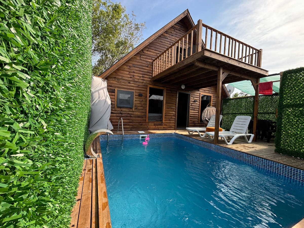 Take it easy at this unique getaway Loca Sapanca Bungalov 6, with a Tropikal themed interior and spacious front & back garden. At LOCA SAPANCA BUNGALOW every house has; a private outdoor pool, indoor Jacuzzi, stone Chimney and loft floor bed. TV unit Air conditioner mini bar Our Bungalows have front and Back terraces. On the front terrace you will find a nice garden with Barbeque area and on the back terrace you can enjoy your privacy with a private pool and sun bathing terrace.