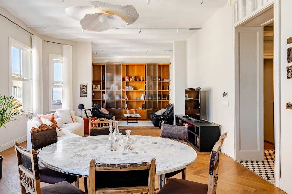 Beyoğlunda tarihi yapıda lüksün ve konforun tadını çıkarın.Ferah dairemizde şehrin ışıklarını ve halicin büyüleyici manzarasını izlemek çok keyifli olacak.