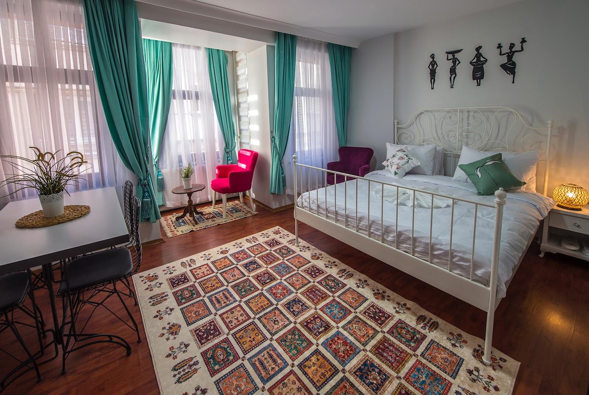Private Studio Apartment, private bathroom & private entrance in the heart of the Sultanahmet Old City, just a min walk to all major historical sights Blue Sultanahmet Mosque & Hagia Sophia & Topkapı Palace & Underground Cistern and Sultanahmet Center.The apt is equipped with: *air-conditioning *free wifi*Flat Screen TV with satellite channels *orthopedic mattresses *mini size kitchen *dining table/chairs *iron & ironing board *hair dryer *towels, sheets and blankets, free cleaning.