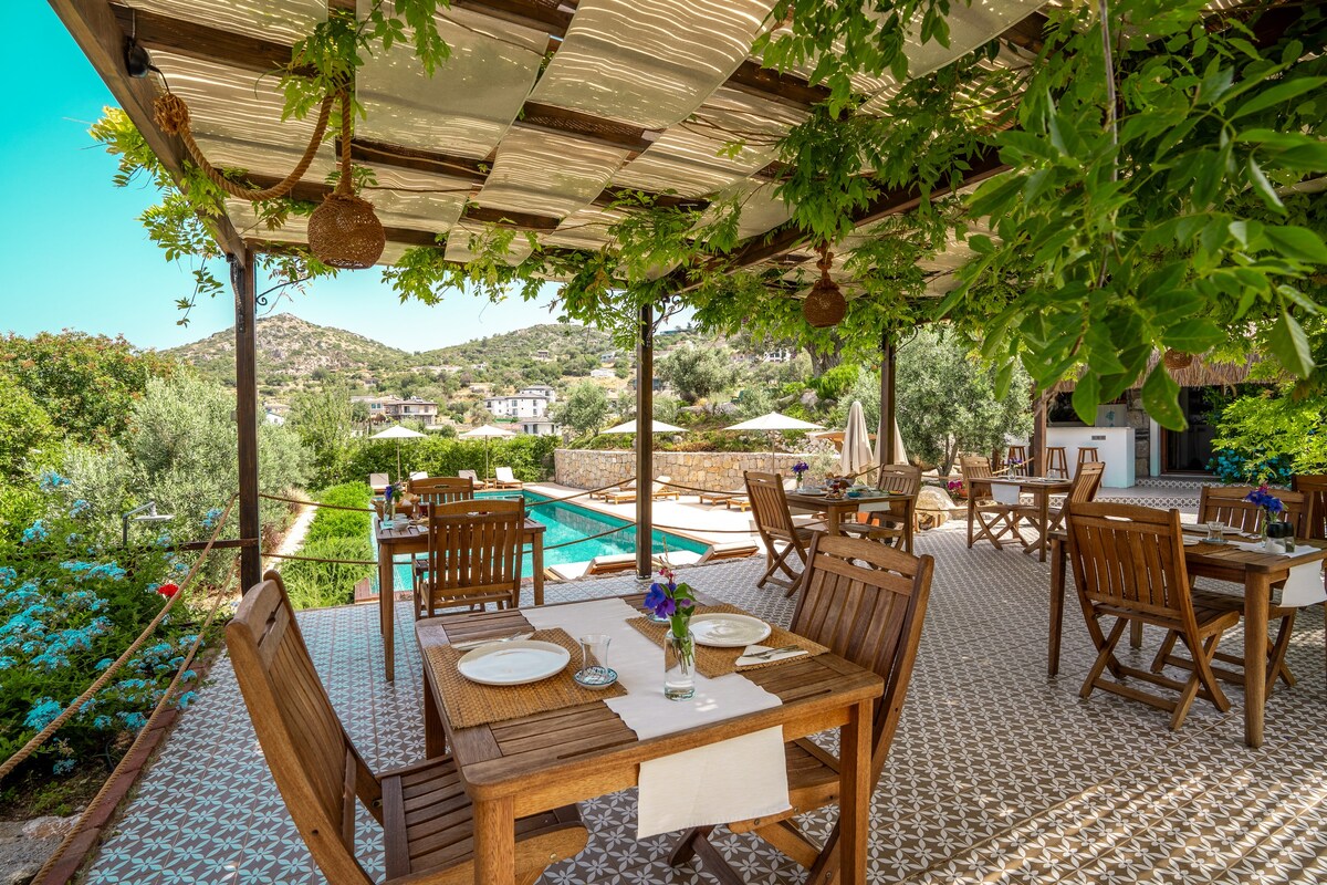 Bademli Bahçe Hotel is a private facility that welcomes only adult guests. In its large garden overlooking the sea, it offers an environment surrounded by almond and olive trees where you can see the island of Symi. The large swimming pool and terraces provide an ideal relaxation area in harmony with the landscape. The hotel and gardens have been carefully designed for a quality and peaceful holiday experience.