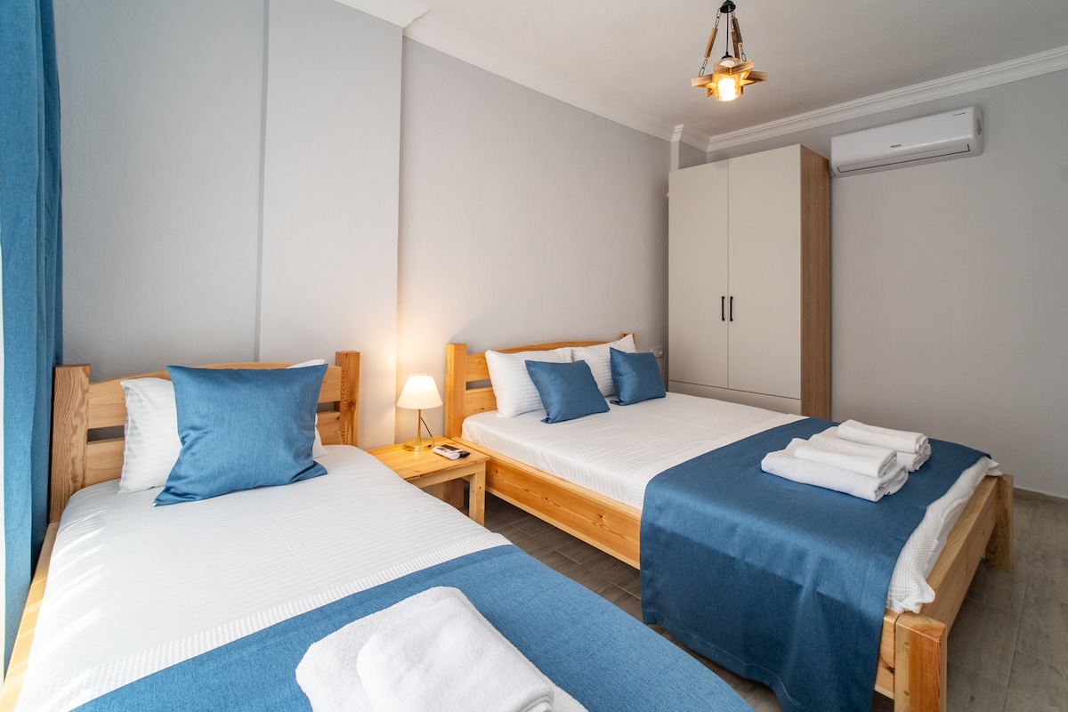 İçmeler Mahallesi'nde, denize sadece 50 metre mesafede yer alan bu şık ve konforlu otelimiz, merkezi konumu sayesinde mutlaka görülmesi gereken noktalara çok yakındır. Odalarımızda klima, mini buzdolabı ve yeni inşa edilmiş modern banyolar bulunmaktadır. Ayrıca saç kurutma makinesi, havlu setleri, şampuan ve sabun gibi tüm temel ihtiyaçlar da hazırdır. Klimalar sessiz ve sorunsuz şekilde çalışmaktadır. Ben ve ailem siz misafirlerimizi dört gözle bekliyoruz!