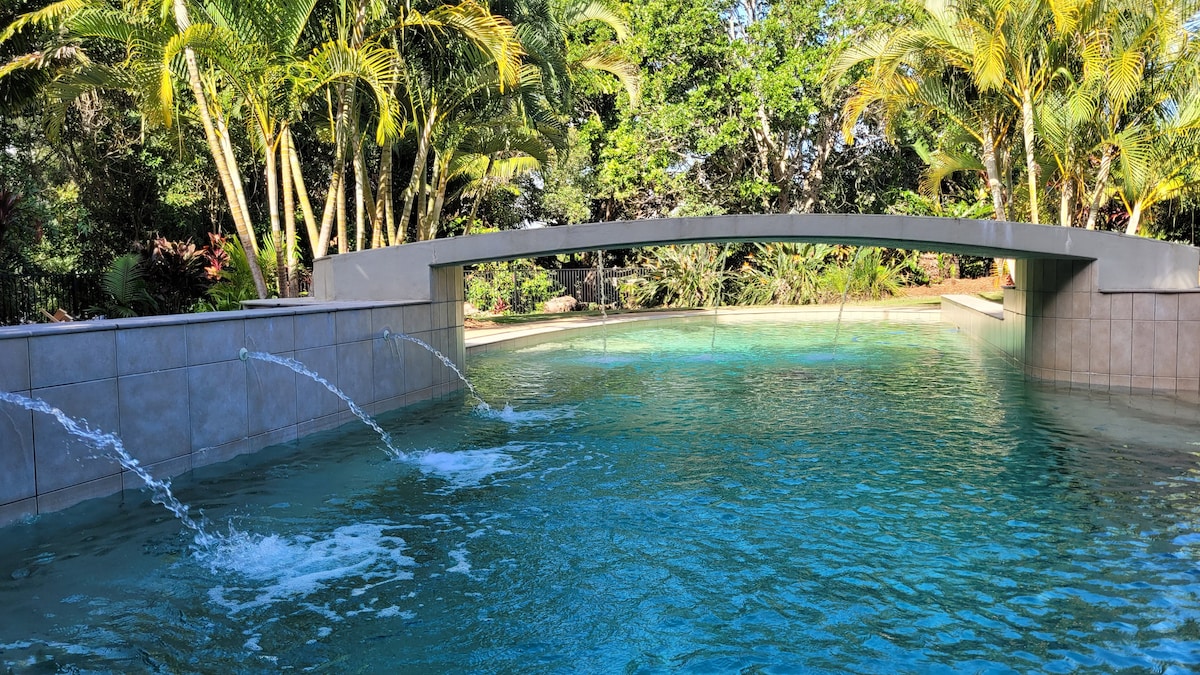 Centrally located on the Sunshine Coast between the hinterland and the sea, near the hip railway town of Palmwoods, Wildwood Sanctuary is the perfect place to explore from, and come home to. Privately nestled amongst landscaped gardens with resort pool, surrounded by birdsong and bush, this unique retreat is private, spacious, playful, quirky, and relaxed. A short drive to local restaurants, pub, cafes, boutiques, markets and the Sunny Coast's waterfalls, beaches & shops.