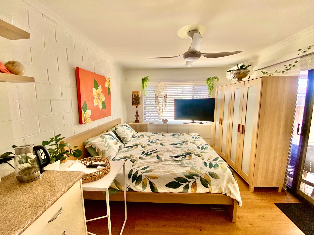Enjoy easy access to everything, this recently renovated ground floor studio offers convenience, comfort and relaxation. Positioned in the heart of Maroochydore, this ever popular dog-friendly stay is a perfect pad for mid week workers, weekend travellers, couples or solo's. Pack your pooch and enjoy our complimentary Wine, Wi-Fi and Netflix. Strolling distance from popular Maroochy river, Sunshine Plaza & dining precinct. Book our Guest Favourite Studio where you and pooch can rest & relax.