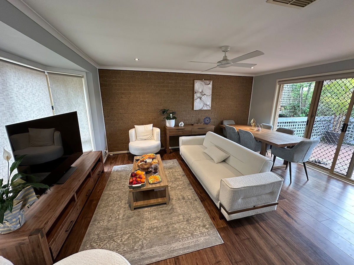 Modern 3-bedroom townhouse in leafy Croydon with 2 king beds and 2 king singles. Features polished red-gum floors, stylish bathroom, full kitchen, open living area, private deck with BBQ, Wi-Fi, laundry, and secure garage. Peaceful setting near shops and cafés with easy access to Melbourne, Yarra Valley, and scenic trails — ideal for relaxing or exploring.