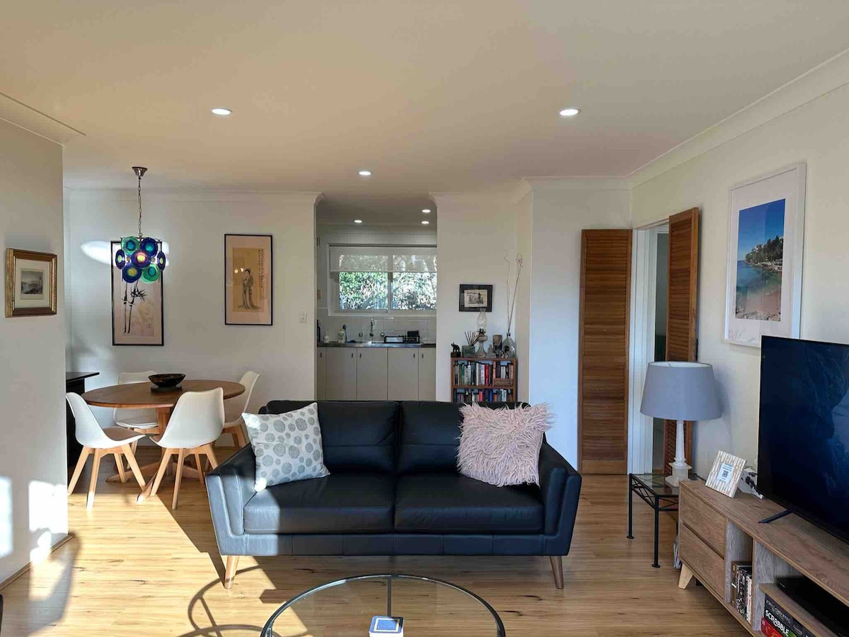 A spacious contemporary apartment with a large under cover verandah, and private tropical garden. The living area is filled with natural light and looks out to a beautiful and tranquil palm-filled garden. We are located 100m from beautiful Camp Cove Beach and just a 5 minute walk to the Watsons Bay ferry service accessing harbour suburbs and the CBD - just 20 minutes away. If you are attending a wedding or getting married we are a short stroll to all of Watsons Bay's wedding venues.