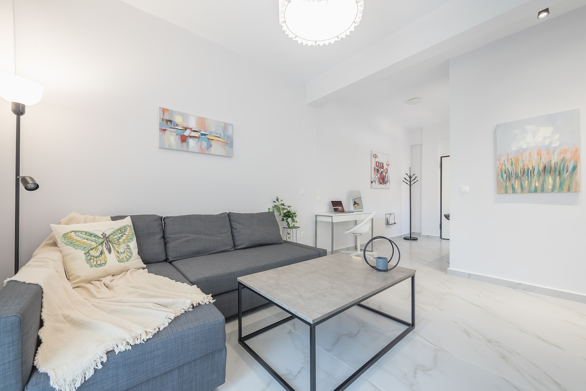 Created with care & taste for the traveller, the guest, the professional, the family. A 60m2brand new flat with all the amenities a contemporary space must have for a total hassle free stay, but with personal taste&care in order to avoid the cold environment of a ready made decoration.Located in the center of Athens&near to all transportation as well as sightseeing but where one still breathes Athens¬ touristic industry. Please see the photos&amenities&feel free to contact for any questions.