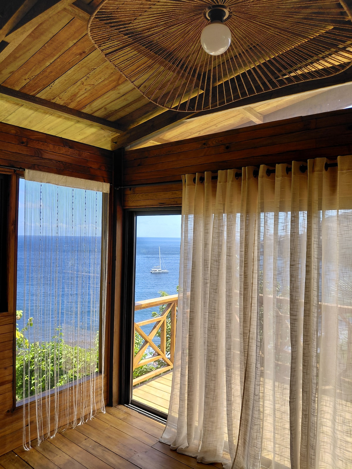 Koakoa lodge vous accueille dans un logement atypique avec deux chambres proposées à l'étage (voir annonce ch.1 pour réserver), une vue magnifique sur la baie de Taiohae de la terrasse. Un lit king size pour la chambre 2 (voir annonce Ch2. pour réserver) avec climatisation. Nous sommes situés à 200m de la plage et à 55mn de l'aéroport. Nous organisons les transferts de l'aéroport et excursions