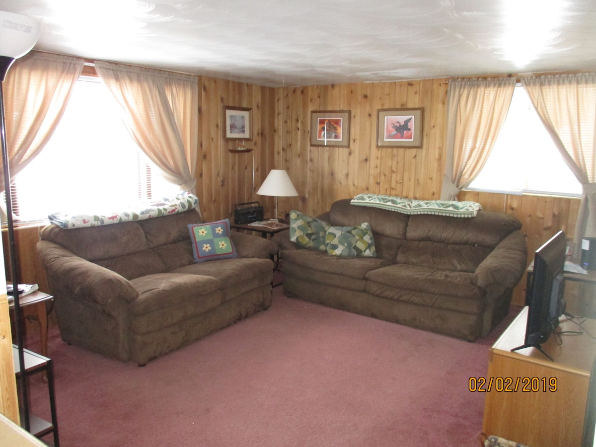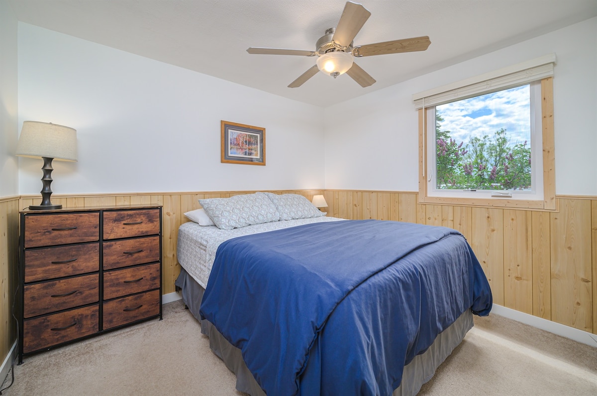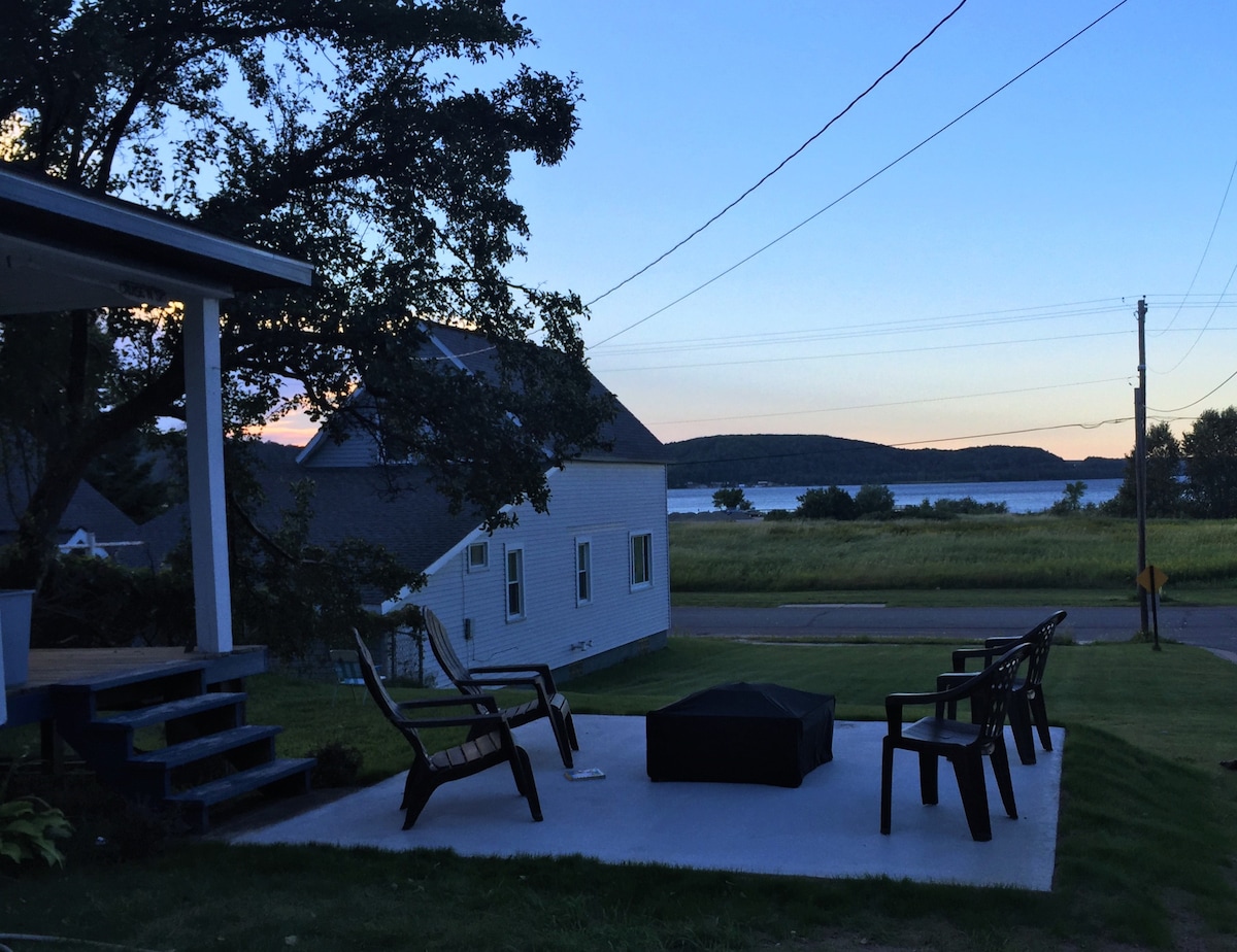Clean furnished Munising Bay front view. 100ft. off water. Our home has high speed fiberoptic internet, satellite and netflix. Cabin is furnished with linens, full kitchen and fire ring in the back yard. Washer and dryer ins basement. Separate tv's feeds up and down. Propane bbq on deck. Pets must be requested at booking. EV and diesel vehicles are charged $10 a day to plug in. No guests can be added later. Thank you kindly.
