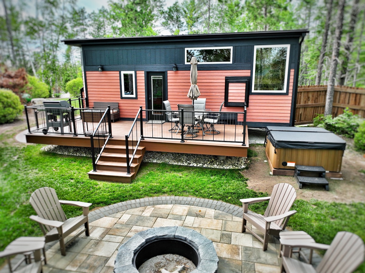 Design-forward bungalow with panoramic Lake Superior views—steps from downtown cafés and the harbor. ⦿ 2 serene bedrooms — 1 king, 1 queen, & sofa bed ⦿ Curated interiors — art, books & cozy textures ⦿ 3 outdoor spaces — 2 porches, patio & fire pit ⦿ Spa bath — heated floors & towel warmer ⦿ Kitchen — fully equipped with coffee, tea & spices ⦿ Wi-Fi — 300 Mbps download ⦿ Free on-site parking