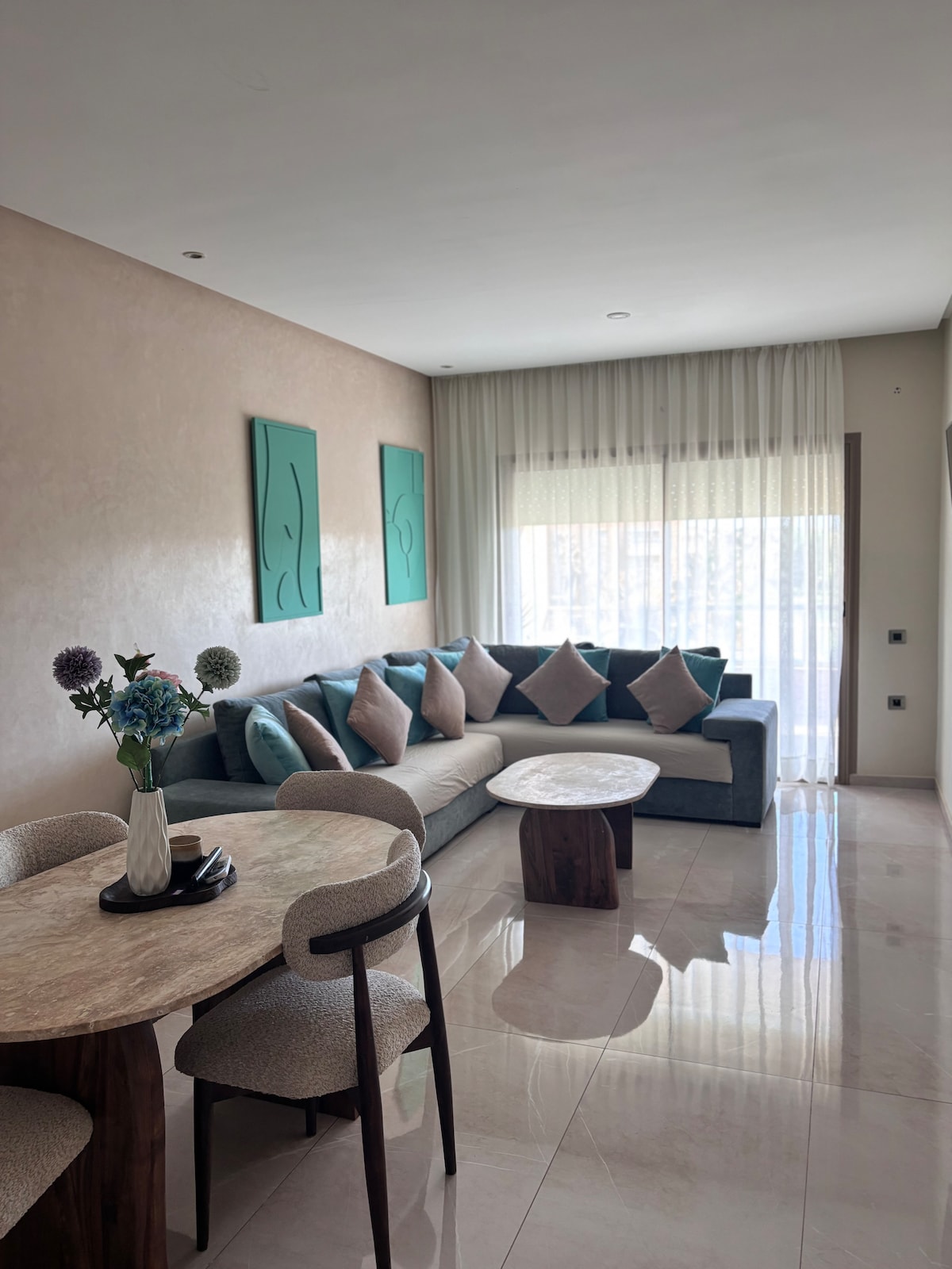 Bienvenue dans votre refuge de luxe au cœur de Marrakech ! Séjournez dans ce somptueux appartement 2 chambres situé dans un complexe résidentiel haut de gamme sécurisé, alliant confort et élégance. Profitez d’un salon moderne et lumineux, d’une cuisine entièrement équipée et d’un balcon privé pour savourer la douceur marocaine. Le complexe propose une piscine magnifique, une place de parking et des prestations hôtelières pour un séjour réussi. Vivez une expérience Marrakechi inoubliable !