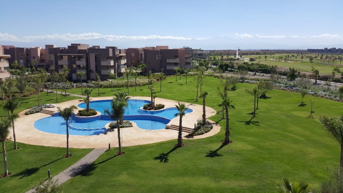 La résidence golfique est située à 5 min de l’aéroport Ménara marrakech. La résidence est prisée de part sa proximité du centre-ville et de tous ses centres d’intérêts tels que les jardins de la Ménara,la fameuse place jemaa el fna avec la Koutoubia 2,5km,jardin majorelle...... Au sein de la luxueuse résidence marrakech golf City prestigia vous profitez d’un havre de paix ! L’appartement offre une vue exceptionnelle à couper le souffle sur la chaîne de l’atlas le golf et une belle piscine
