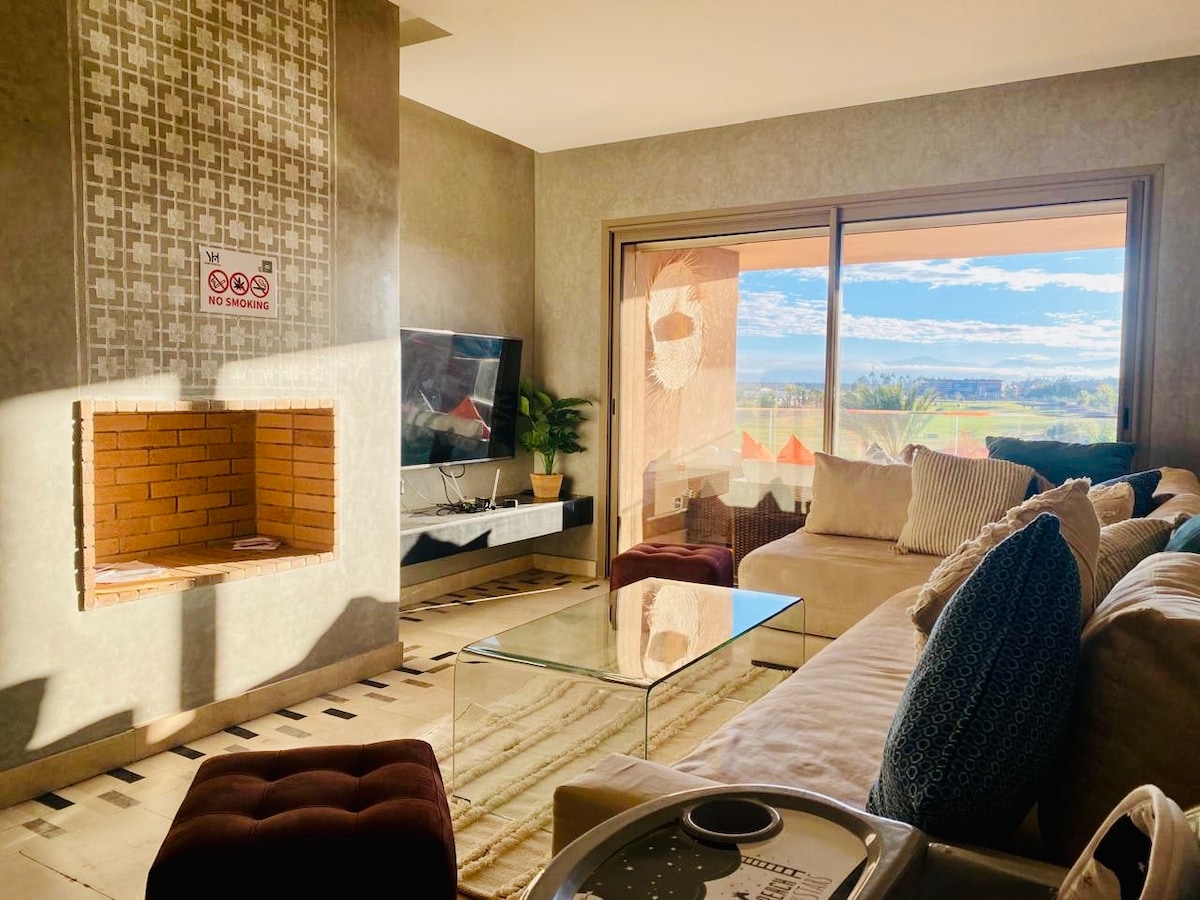 Bienvenue dans l’appartement cosy & moderne dans la Résidence Prestigia Jade. Conçu pour répondre à ceux qui voyage pour affaires, en famille ou entre amis - 2 chambres, 2 salles de bain - Salon & salle à manger - TV, WIFI: Netflix, Amazon Prime & Disney+ - Cuisine équipée - Terrasse vue golf 1 min à pied du restaurant du golf 10 min en voiture: - L’aéroport, du centre commercial Ménara Mall et Mazar et du quartier Hivernage 15 min en voiture de la Place Jemaa elFna et quartier de Guéliz