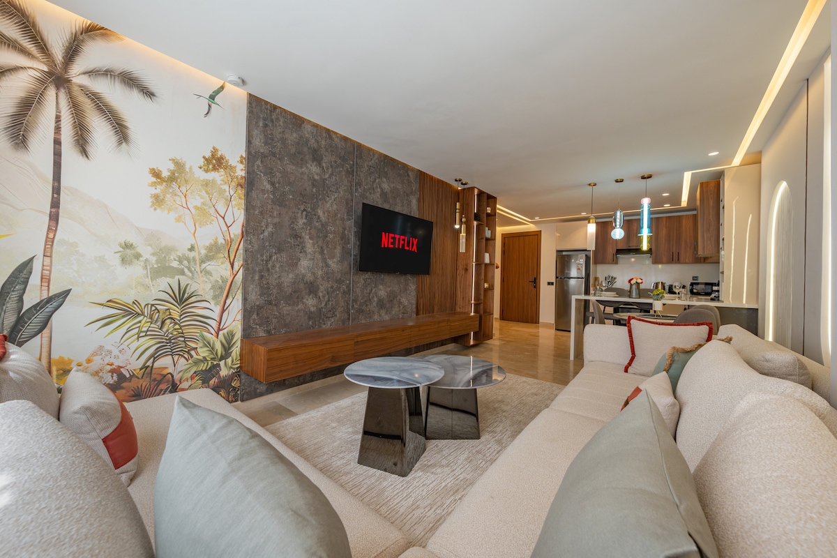 Séjournez dans un élégant appartement 1 chambre avec balcon privé, salon design et cuisine moderne, au cœur de Guéliz. Profitez d’une douche italienne, IPTV avec films/séries, Wi-Fi rapide et literie haut de gamme. Idéal pour couples, affaires ou détente. Réservez dès maintenant et vivez Marrakech dans le confort et le style !