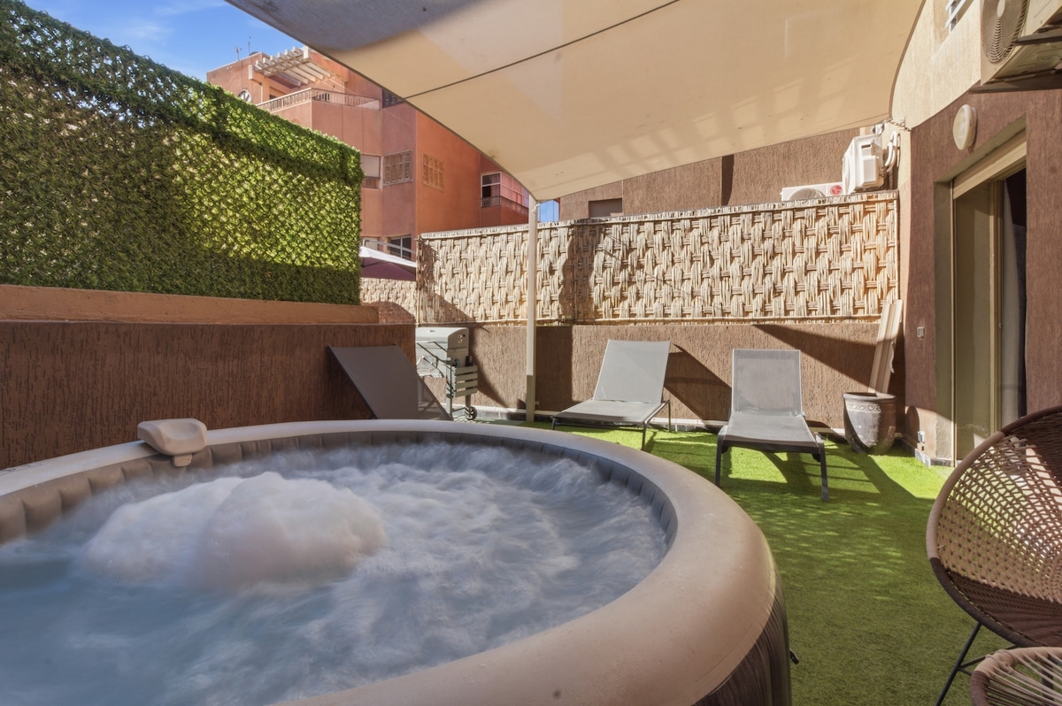 位于盖利兹(Guéliz)中心地带的按摩浴缸公寓,毗邻伊甸园广场(Carré Éden)