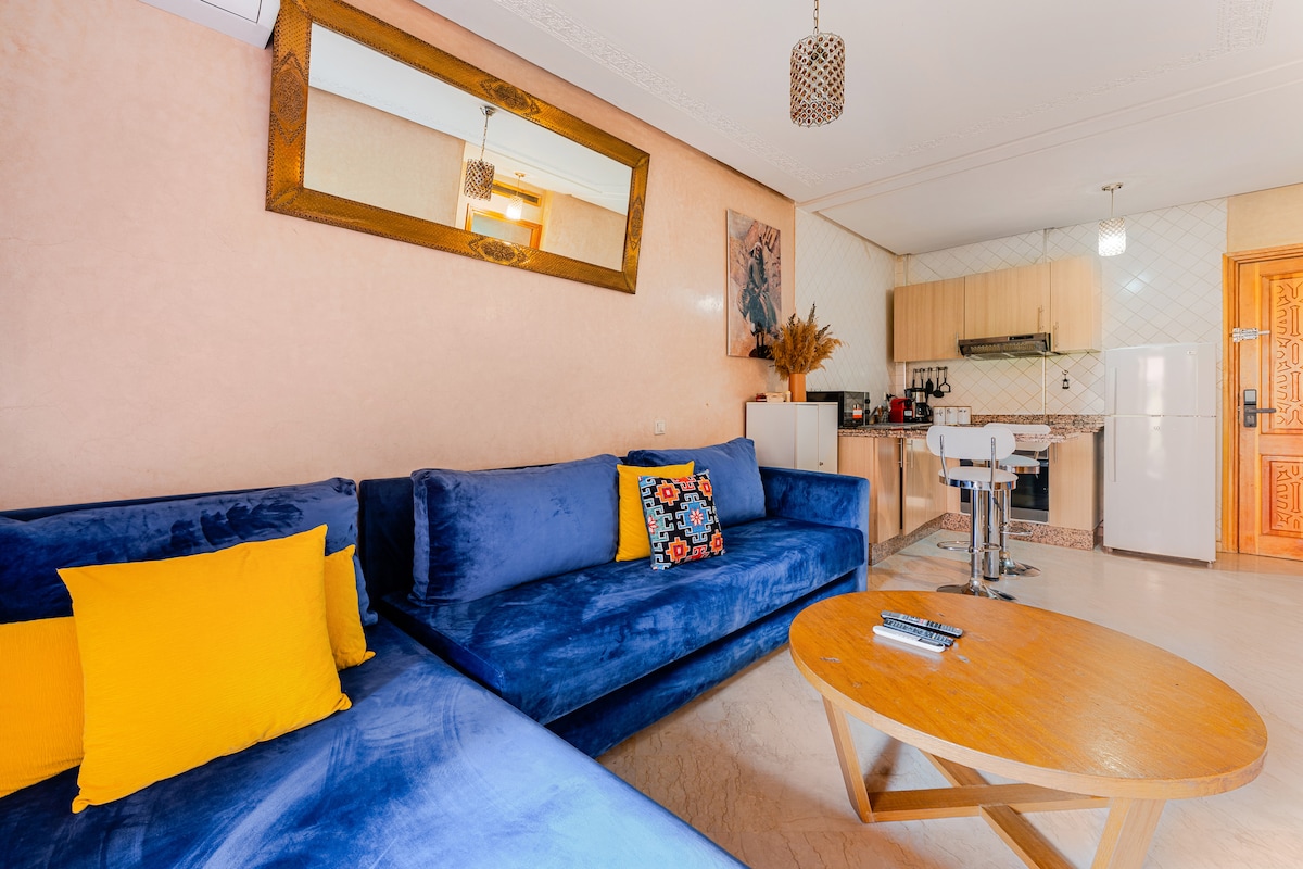 Un appart tout confort - Résidence neuve avec ascenseur et accès sécurisé - Appart fonctionnel, moderne et joliment décoré - Clim, Wi-Fi, TV ... pour un séjour agréable 🏊♂️ Les atouts de votre séjour - Piscine en rooftop avec vue dégagée, idéale pour vous détendre après vos journées de visite - Quartier central et animé, parfait pour découvrir Marrakech - A proximité immédiate des commerces, et lieux de vie 📌 À savoir Nous respectons la législation marocaine (voir règlement intérieur).