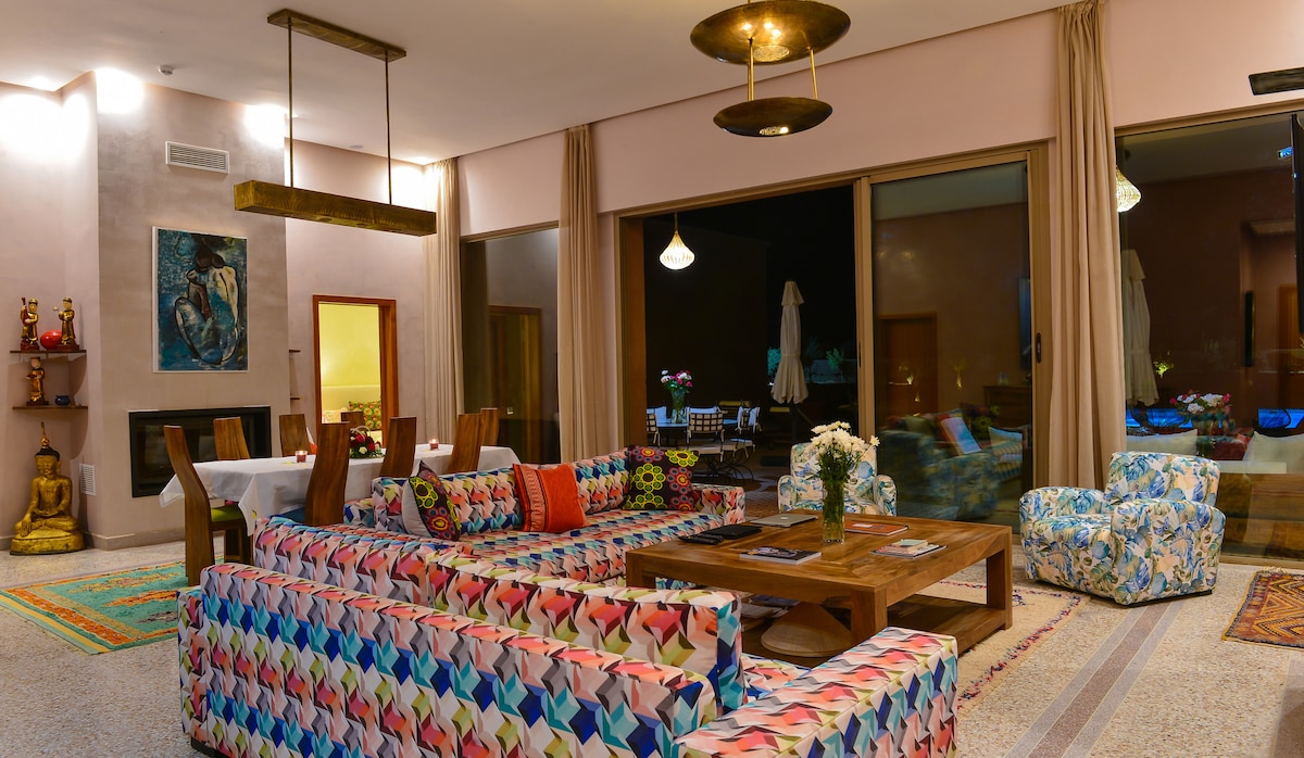 Maison d'architecte située à la campagne typique de la région de Marrakech, pour les amoureux de la nature . Jardin magnifique, légumes du potager et poulailler. Il y a une piscine privative. Le tout sur un terrain de 5000m2. Un gardien est présent dans la propriété et une pisciniste nettoie la piscine 2 fois par semaine l'hiver et tous les jours l'été. L'eau et l’électricité sont des ressources sacrées à la campagne :) Le respect de l'environnement est important.