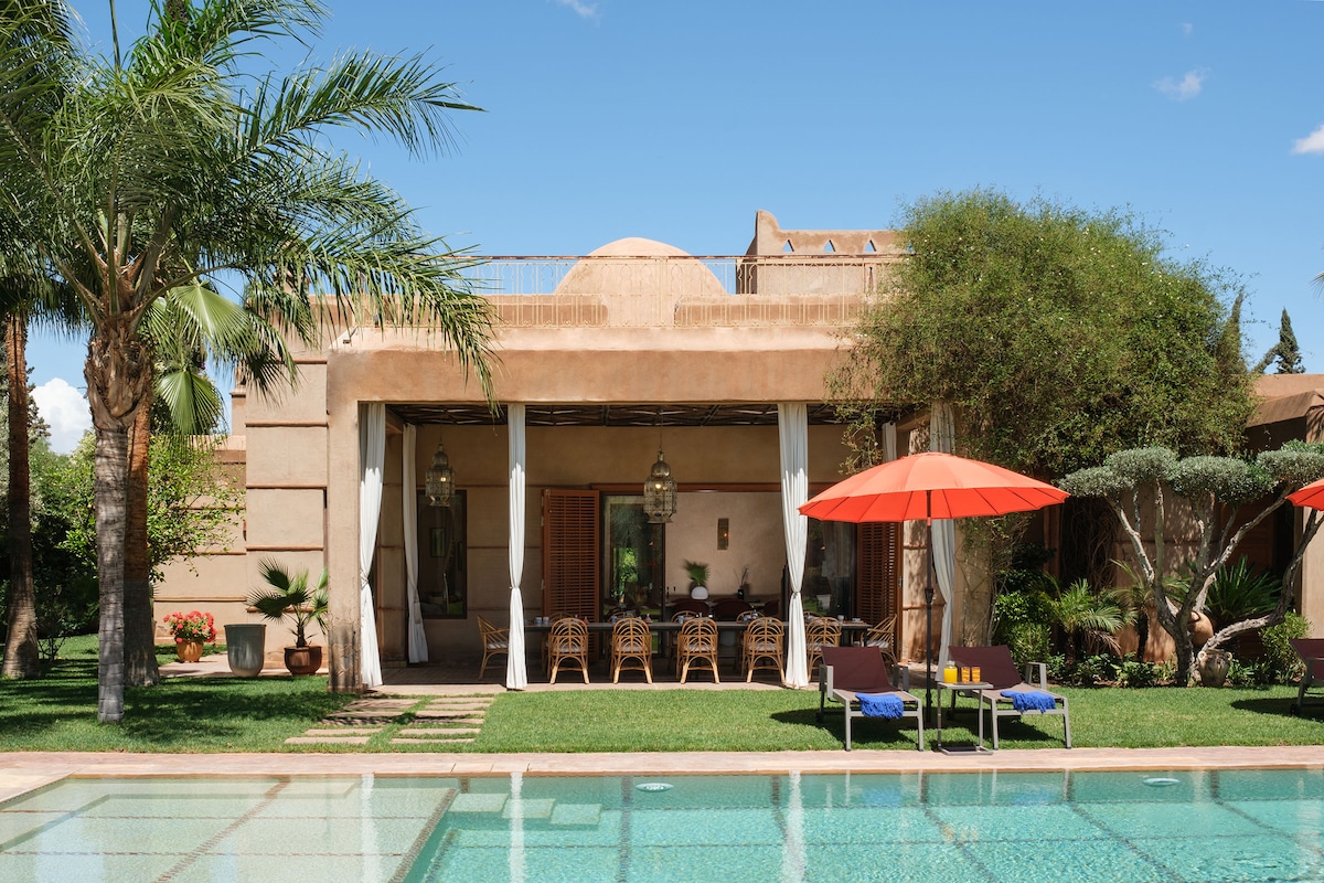 Villa Hilin is a peaceful and elegant 3-to-4-bedroom villa nestled in a private estate just outside Marrakech. With its lush garden, 18-meter pool, and private hammam, this 400 m² home offers an ideal setting for a relaxing holiday with family, friends, or couples. The villa accommodates up to 6 guests in 3 suites, and can welcome up to 8 guests with an extra charge for the 4th bedroom.