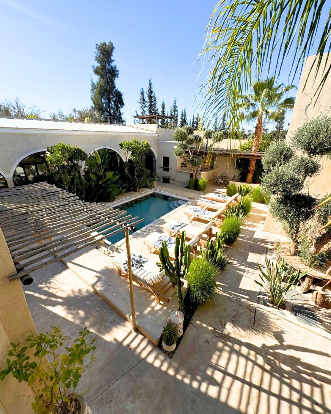 Beautiful villa with character 15/20 minutes driving from the Medina and the center. Big garden, swimming pool and house completely privative with possibility of yoga, class, massage indoor and outdoor in our garden spa Price for lunch per person including bfast or diner 25 euros The staff is discreet and attentive cleaning everyday included. Adapted to the smallest with all necessary equipment We can organiseday spa, tour guide in Marrakech and around for a day or half-day.