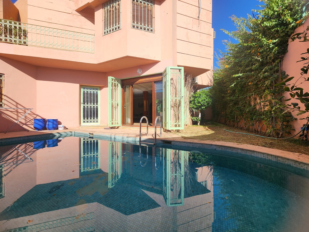 Belle propriété avec vue sur l'atlas disposant de quatre grandes suites et quatre "petites" suites qui ont chacune leur propre salle de bain et toilette. La villa dispose d'une grande piscine et son jardin. Un Hammam est également possible sur demande. Cuisine marocaine raffinée sur demande. (Tarification à voir avec la propriétaire).