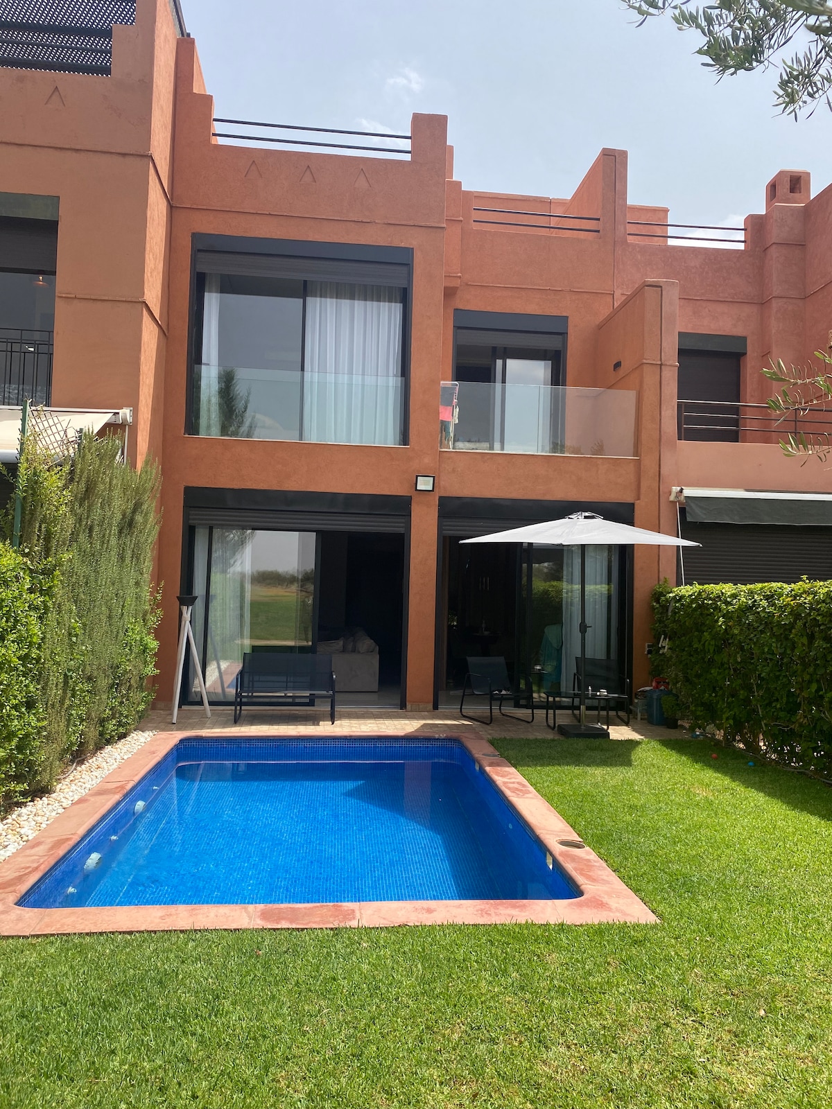 Step into the luxurious 3BR 3.5Bath villa in the premier Samanah Golf Club! It offers a relaxing getaway at the professional 18-hole course close to many exciting Marrakech attractions and historical landmarks. The stylish design, breathtaking garden, and rich amenity list will leave you in awe. ✔ Scenic Views ✔ Daily Housekeeping + Chef Services ✔ 3 Bedrooms + Ensuite Baths ✔ Comfortable Living Area ✔ Full Kitchen ✔ Garden (Pool, Pergola, Lawn) ✔ High-Speed Wi-Fi ✔ Parking See more below!