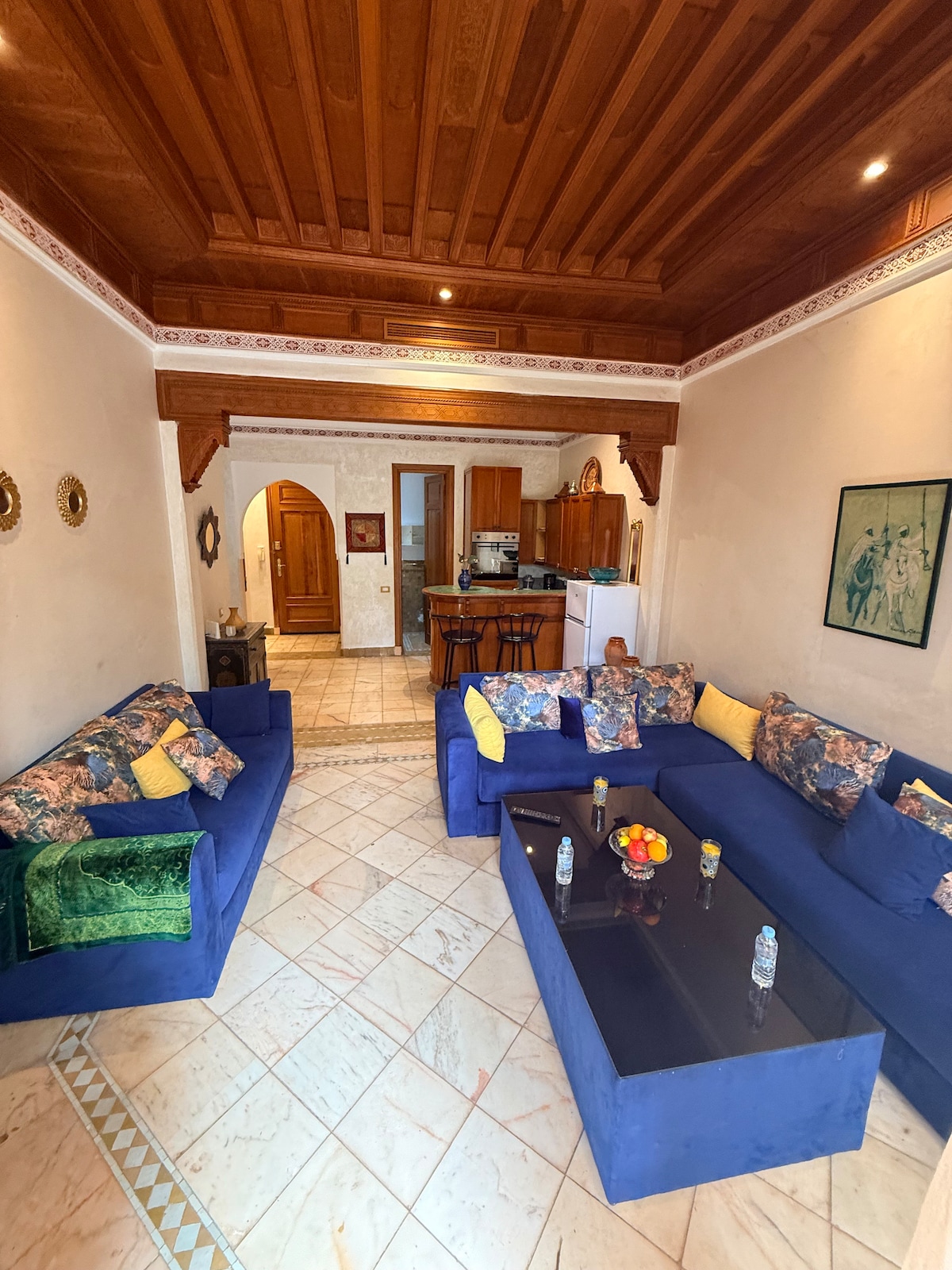 Laissez-vous séduire par cet appartement niché au cœur de la mythique Palmeraie de Marrakech, parfait pour une escapade à 2, 3 ou 4 voyageurs. Il offre une chambre cosy pour deux personnes et un salon accueillant avec 2 couchages supplémentaires. En rez-de-jardin, profitez d’un accès direct aux espaces verts d’une résidence sécurisée 24/7, dotée de trois superbes piscines et d'un lac artificiel. Sa décoration traditionnelle crée une atmosphère chaleureuse, propice au dépaysement et à la détente.