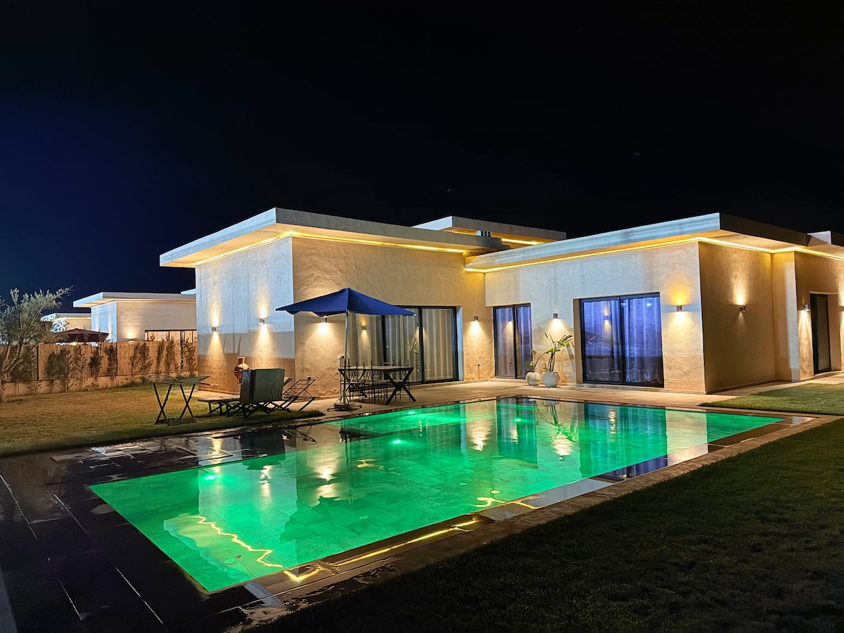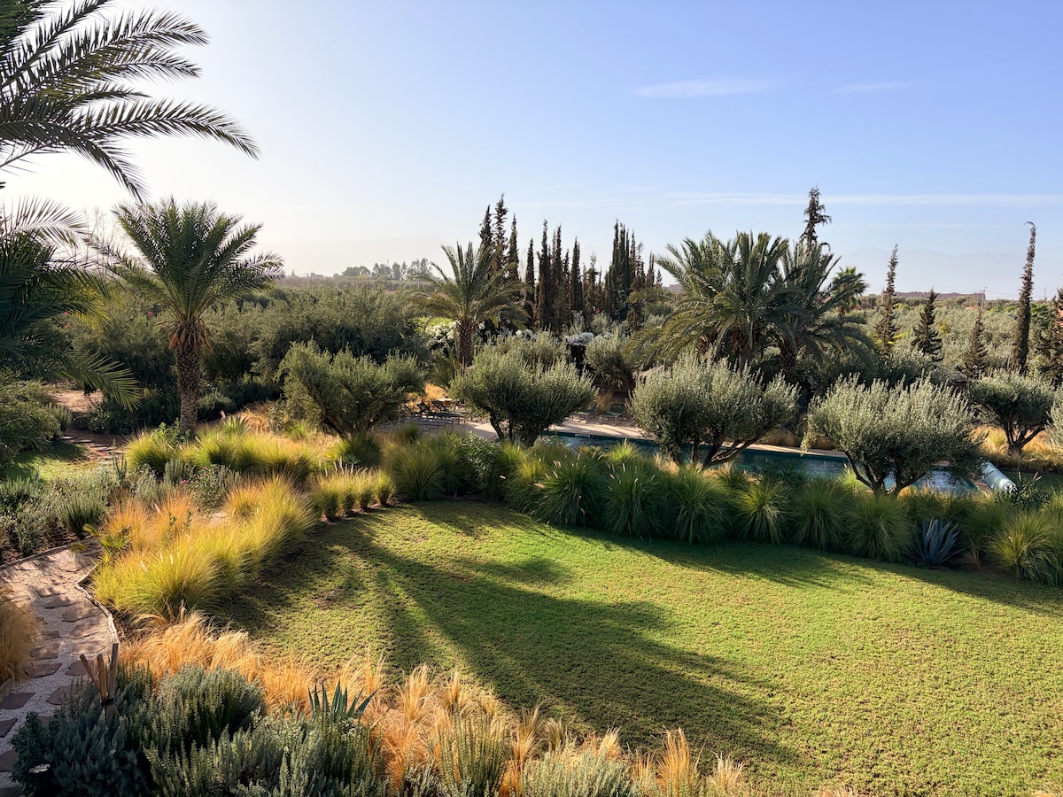 Welcome to Dar Louma, our brand-new ecolodge located just 10 minutes from the medina and steps away from the Amelkis Golf Course. Ideal for families and groups of friends, our villa features 4 bedrooms, including 2 master suites, accommodating up to 8 guests. Enjoy our heated pool and lush garden under the Marrakech sun. Khamissa, our housekeeper, and Saïd, the caretaker, will be at your service to make your stay unforgettable. insta @dar.louma