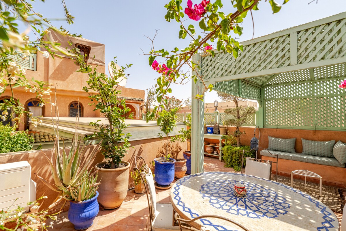 This beautiful Riad is in one of the best area in Marrakech ,near the king castle. 7 minutes from airport and 10 minutes walking from Jamaa el fna. This Riad has 5 bedrooms with 5 bathrooms .The rooftop is amazing and Fati will take care of you during your stay she will prepare your breakfast everyday and clean the riad. The area is safe with a big parking 3 minutes from the Riad and you will find all kind of grocery in the area . This Riad was my own home for 15 years so it has a real soul :-).