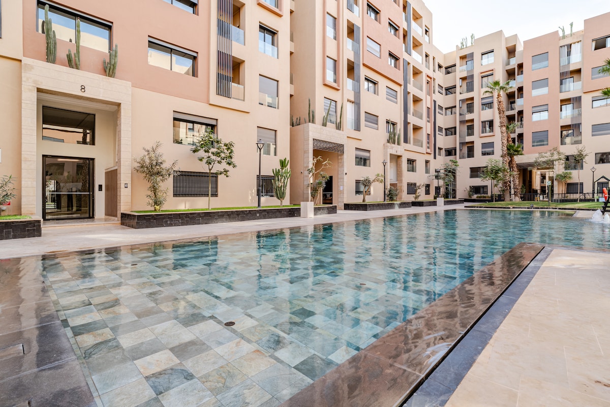 Séjournez en plein cœur de Marrakech dans notre appartement 2 chambres et 2 salles de bain. Profitez d'une literie Simmons haut de gamme, WiFi haut débit (fibre optique) et d'une décoration moderne avec une touche ethnique. Cuisine entièrement équipée, baignoire élégante, et douche italienne. À quelques pas de la place Jemaa el-Fna, du Plazza, et du Carré Eden. NB : Les couples marocains non mariés ne sont pas autorisés.