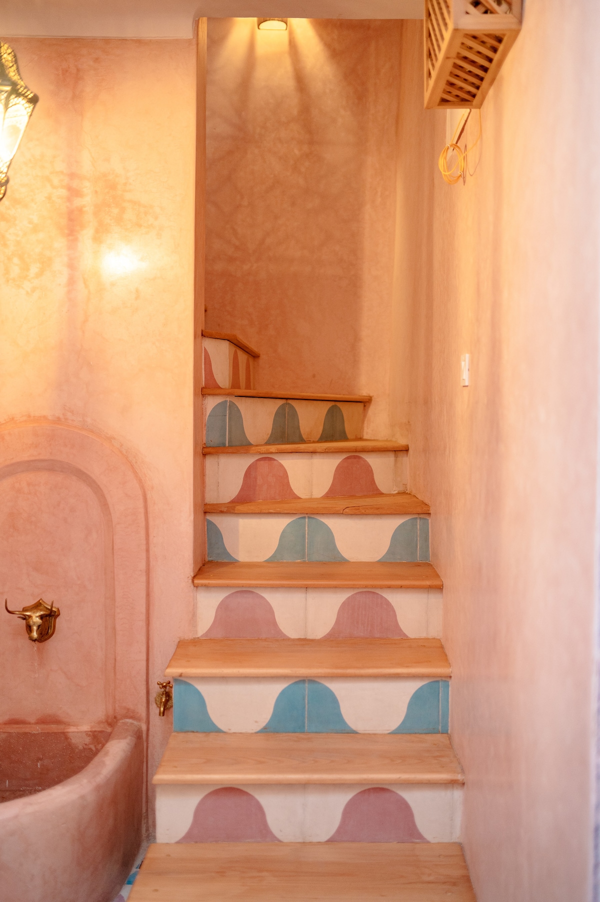The Chebakia House is an exclusive one-bedroom house distributed across two floors and two large terraces, around the corner from the Dar El Bacha Palace. She is the little sister project to the popular Riad Chebakia. They share a whimsical pop-art aesthetic with a traditional Moroccan twist, but Apartment Chebakia is the lighter, dreamier version. She comes with two large terraces, high-end amenities, and is nestled into a delightful neighborhood 10 minutes walking from Jma el Fna.
