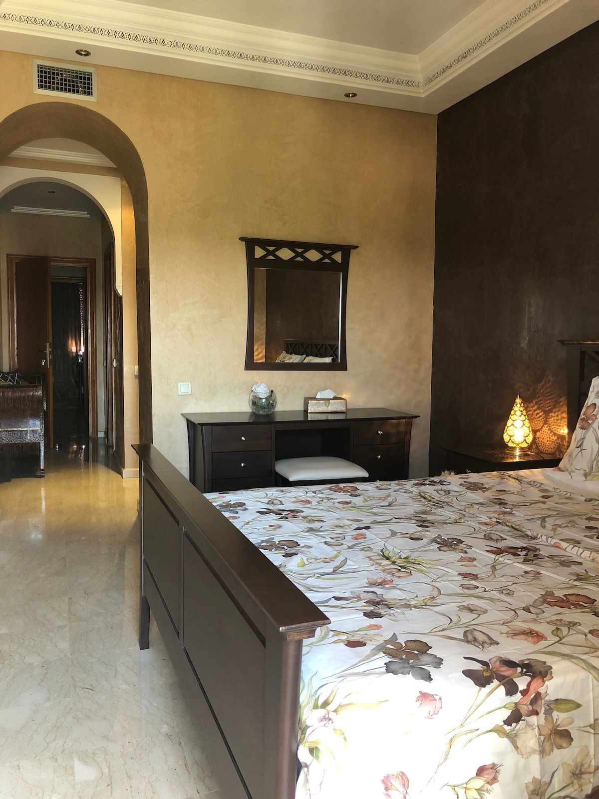 Diese charmante Wohnung befindet sich im 5 Stock am Boulevard Mohammed VI, das Apartment liegt ca 1,8 km vom Koutoubia Moschee, Saaditengräben und den berühmten Platz Djemaa-el Fna entfernt. Zu den Beliebten Sehenswürdigkeiten in der Nähe des Boulevard Mohammed VI gehören der Konferenzpalast, der Palast El Badi und die Ménara Gärten. Zum Flughafen Marrakech-Ménara sind das ca. 2 Km. Der Hauptbahnhof ist nur 5 min vom Apartment entfernt. Zahlreiche Restaurants und Malls sind zu Fuß erreichbar.