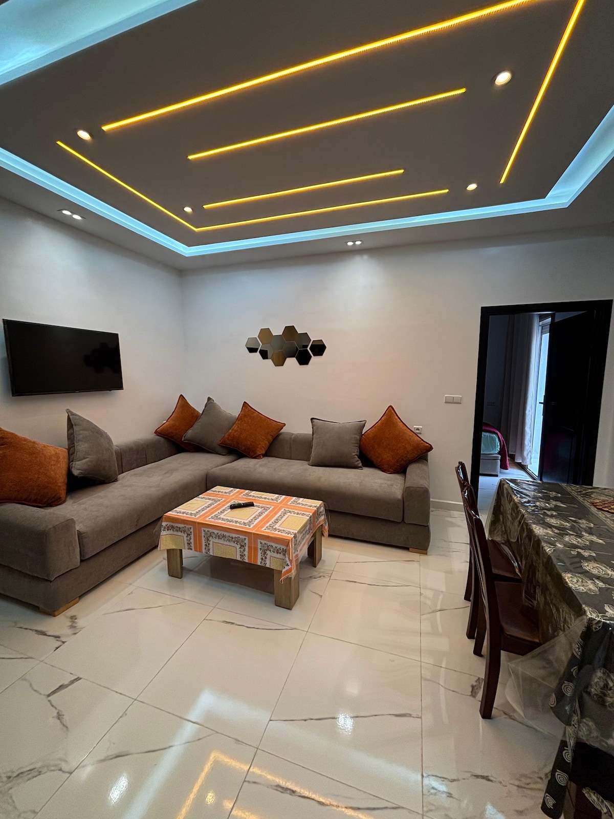 Looking for a modern, comfortable apartment in Essaouira that's more affordable than a hotel? Modern and comfortable apartment in Essaouira, located in Résidence Jawhara, a quiet and secure 24/7 residence, a 4-minute walk from the beach and close to the historic medina. Ideal for couples, families, or solo travelers, this accommodation offers excellent value for money, much more advantageous than a hotel, with more space and privacy.