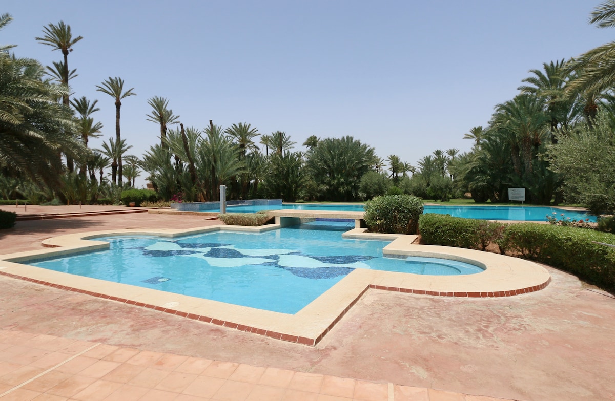 Beautiful villa with character 15/20 minutes driving from the Medina and the center. Big garden, swimming pool and house completely privative with possibility of yoga, class, massage indoor and outdoor in our garden spa Price for lunch per person including bfast or diner 25 euros The staff is discreet and attentive cleaning everyday included. Adapted to the smallest with all necessary equipment We can organiseday spa, tour guide in Marrakech and around for a day or half-day.