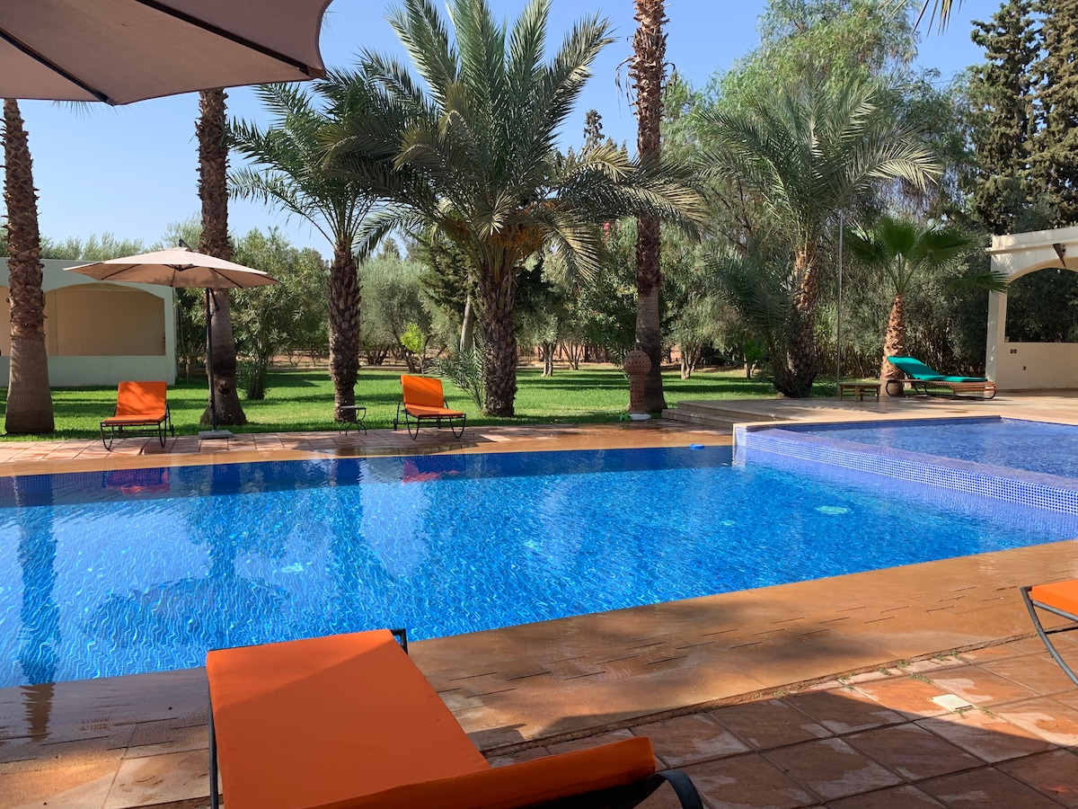 Maison d'architecte située à la campagne typique de la région de Marrakech, pour les amoureux de la nature . Jardin magnifique, légumes du potager et poulailler. Il y a une piscine privative. Le tout sur un terrain de 5000m2. Un gardien est présent dans la propriété et une pisciniste nettoie la piscine 2 fois par semaine l'hiver et tous les jours l'été. L'eau et l’électricité sont des ressources sacrées à la campagne :) Le respect de l'environnement est important.