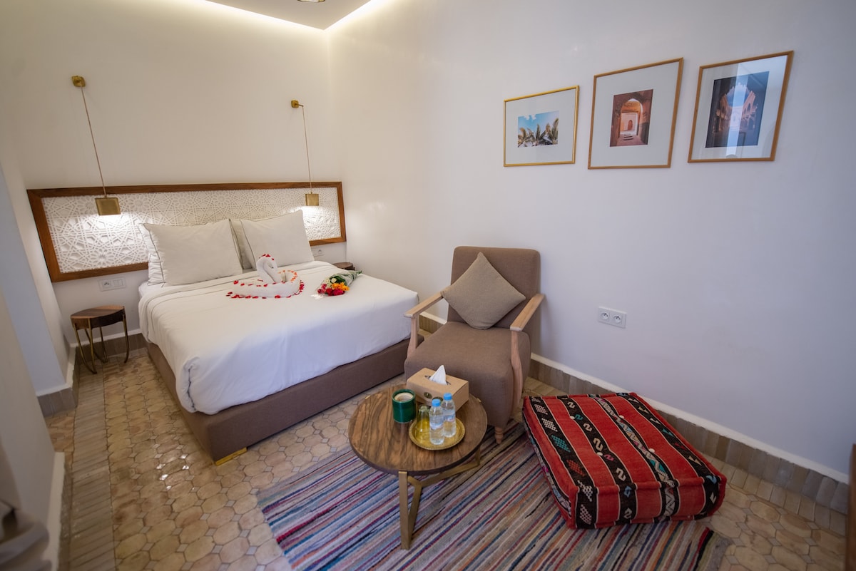 Welcome to our peaceful and beautifully restored Moroccan riad, located in the heart of the old medina. Whether you're here to explore the culture, history, or simply relax, our riad offers a unique blend of traditional architecture and warm hospitality. Enjoy breakfast in the courtyard or on the rooftop terrace, where you can take in panoramic views of the medina and listen to the sounds of the city waking up. In the evenings, unwind under the stars with a cup of fresh mint tea.