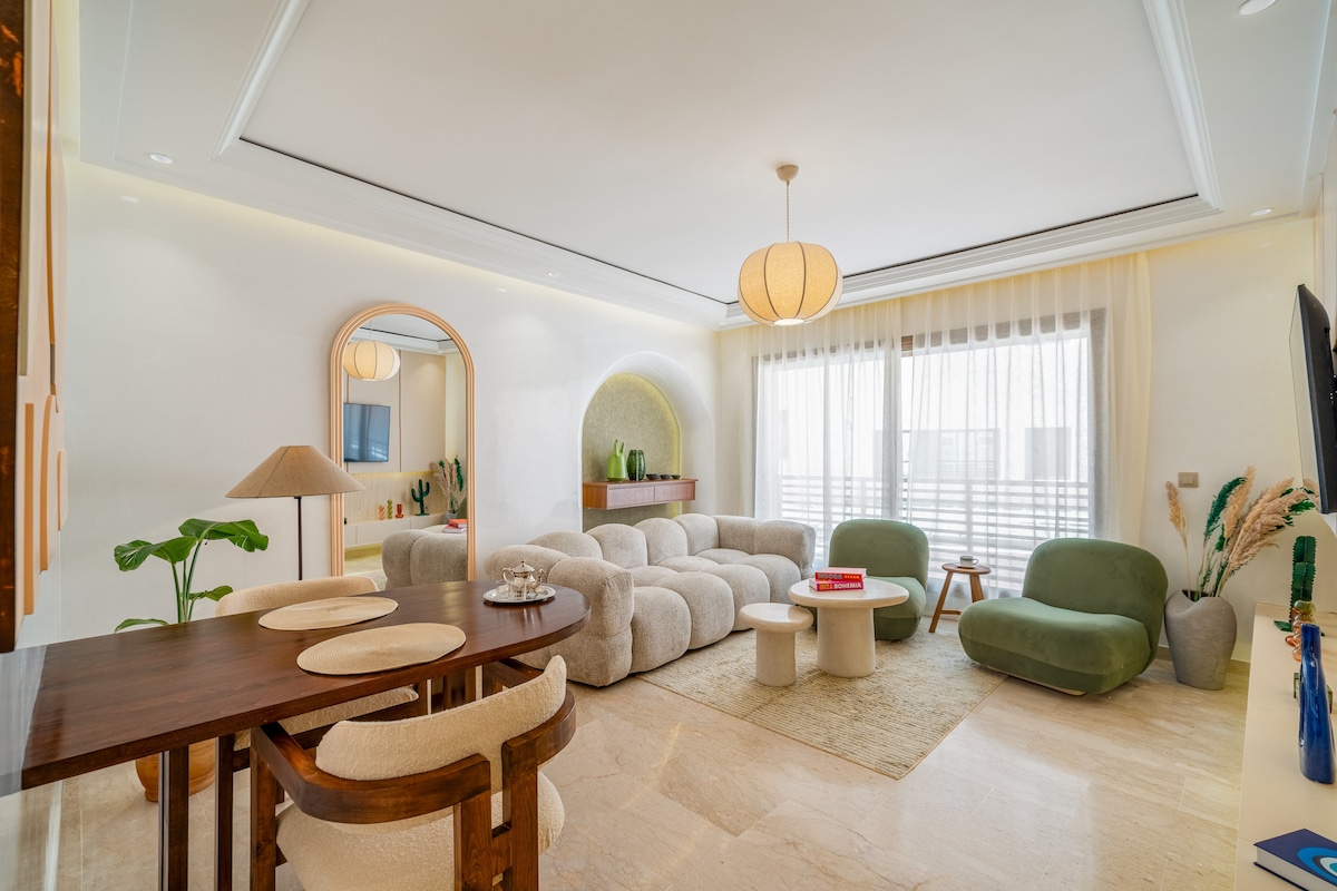 Ce logement est IDÉAL pour son emplacement au cœur de Gueliz et ses prestations de qualité. À seulement 800 m des Jardins Majorelle, 500 m du Carré d'Eden et 400 m du Marché des Fleurs, explorez Marrakech à pied. Profitez de la piscine sur le rooftop pour vous immerger dans le charme et la magie de la ville rouge, ainsi que d'une piscine au rez-de-chaussée. Appartement moderne, offrant confort, style et wifi à la fibre pour un séjour inoubliable. Ne ratez pas cet emplacement privilégié !!!