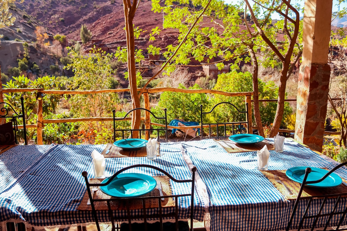 Votre lodge, situé face au majestueux sommet du Toubkal, incarne l'authenticité berbère. Construit en pierres et en bois, il allie confort et tradition. Les murs en terre battue, les tapis colorés et les coussins en laine créent une atmosphère chaleureuse et intime. Les grandes fenêtres offrent une vue imprenable sur les montagnes, et la terrasse extérieure permet de savourer un thé à la menthe tout en admirant le paysage. Un véritable havre de paix au cœur de la nature.