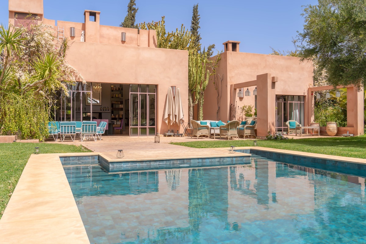 Faites une expérience hors du temps, dans cette magnifique maison marocaine traditionnelle avec sa piscine et son jardin privatif. Idéale pour la famille ou des amis, elle vous permettra de vous détendre dans un cadre élégant et épuré. Elle a été construite en 2010 par un architecte reconnu à Marrakech Un jardin privatif de 650m2, et un beau verger de 3000m2 Terrasse- Toit avec vue sur Atlas Très grande piscine à débordement 14x6m sans vis à vis équipé d Internet et TV satellite ,acces Netflix