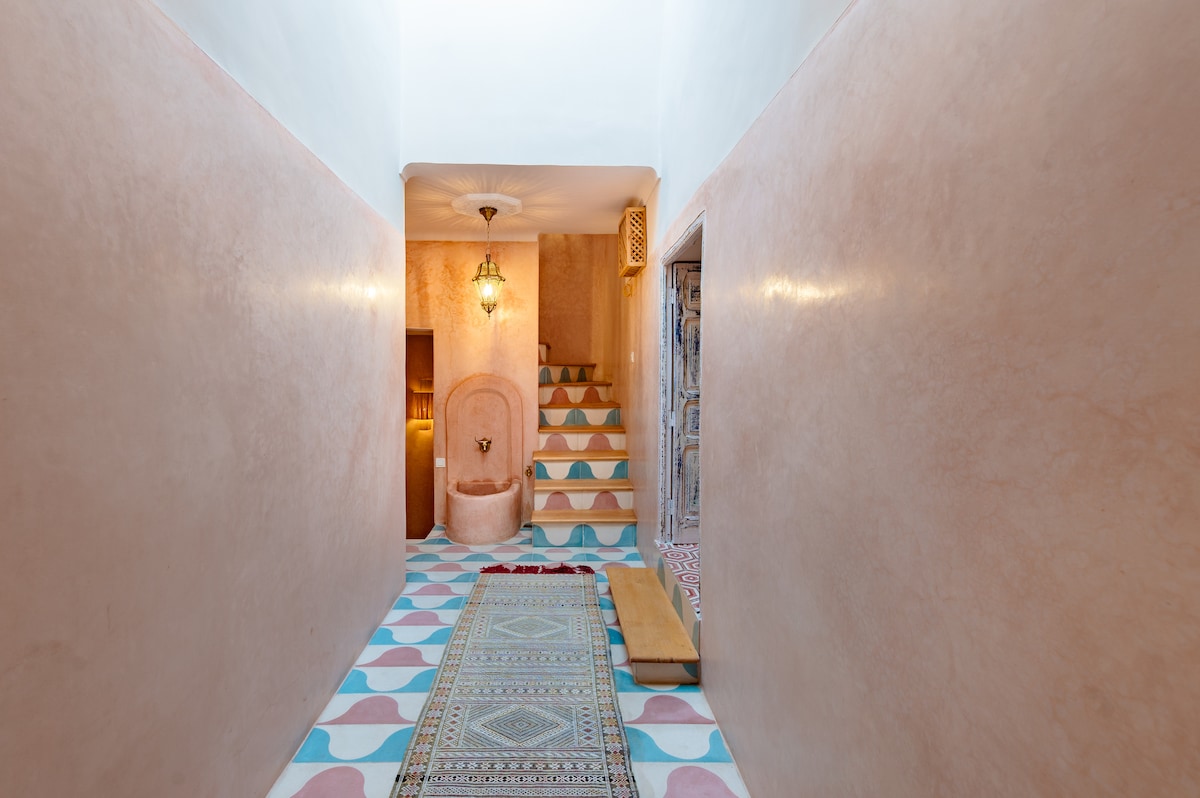 The Chebakia House is an exclusive one-bedroom house distributed across two floors and two large terraces, around the corner from the Dar El Bacha Palace. She is the little sister project to the popular Riad Chebakia. They share a whimsical pop-art aesthetic with a traditional Moroccan twist, but Apartment Chebakia is the lighter, dreamier version. She comes with two large terraces, high-end amenities, and is nestled into a delightful neighborhood 10 minutes walking from Jma el Fna.