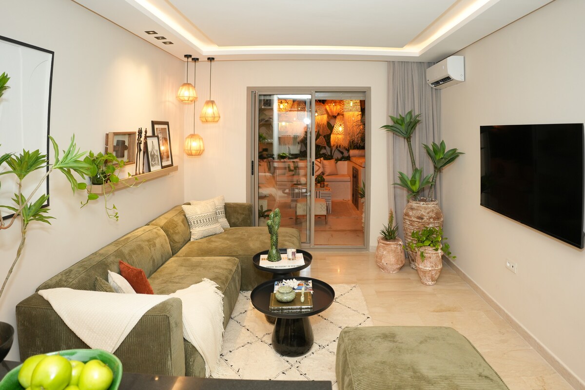 Situé à Marrakech à seulement 5 minutes du centre, cet appartement élégant et lumineux se trouve dans une résidence calme et sécurisée avec piscine. Il dispose d’un salon chaleureux, d’une grande chambre confortable avec fresque murale éclairée et coiffeuse, d’une cuisine ouverte entièrement équipée, d’une salle de bain moderne et d’un balcon avec vue sur la piscine. 📍 Emplacement idéal, proche des attractions, tout en offrant un cadre paisible ➡️ Parfait pour un séjour détente à Marrakech