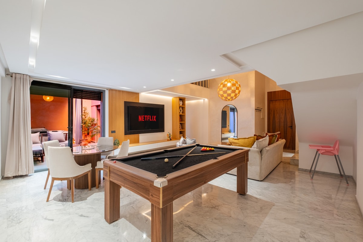 Expérience immersive dans un appartement-galerie contemporaine. Parfaitement situé dans le Triangle d’Or festif, 15 min à pied de la médina. Cet appartement très haut de gamme de 140m2 lumineux et cosy. À deux pas des palaces emblématiques (Mamounia, Sofitel, Casino) Résidence de prestige avec piscine. Idéal jusqu'a 5 voyageurs, il offre 2 chambres, 3 terrasses, 2 salles de bain et 3 WC. Entre ambiance branchée et animée, une expérience unique au cœur de Marrakech vous attend.