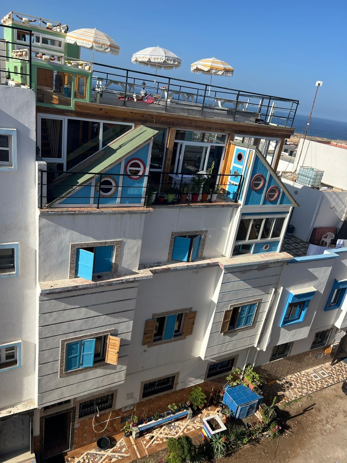 Ce logement unique, à l'entrée de la Médina, est un des plus beaux appartements-terrasse d'Essaouira ! Le dernier étage et le toit terrasse privatif sont situés au plus haut du quartier du Méchouar (maison bâtie en 1835) ! Ce "loft" de 140m² est aujourd'hui à la disposition des voyageurs privilégiés qui le réserveront. Terrasse aménagée & vue panoramique à 360° proche de tous les sites et commodités, ce qui facilite la planification de votre visite d'Essaouira.