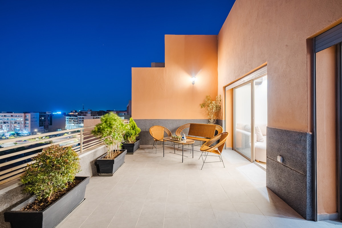 Vous trouverez un appartement fonctionnel, équipé, à la fois traditionnel et moderne. Il est en plein centre de Marrakech dans le quartier dynamique de Gueliz. La terrasse privée de 30m2 vous permettra d'apprécier des moments de calme après vos promenades dans la bouillonnante Marrakech. A nice furnished apartment, both traditional and modern, right in the center of Marrakech in the lively Gueliz. The private terrace will allow you to enjoy quitness after your walks in the bustling Marrakech.