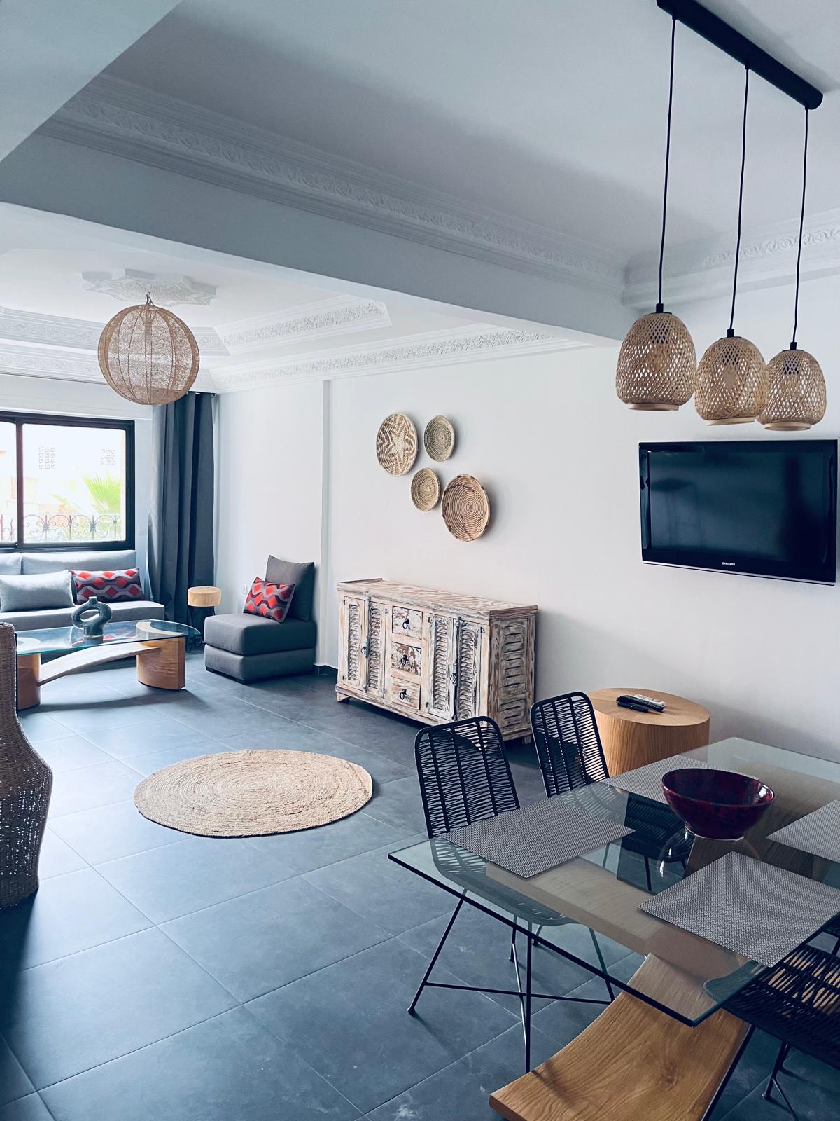 Un appart tout confort - Résidence neuve avec ascenseur et accès sécurisé - Appart fonctionnel, moderne et joliment décoré - Clim, Wi-Fi, TV ... pour un séjour agréable 🏊♂️ Les atouts de votre séjour - Piscine en rooftop avec vue dégagée, idéale pour vous détendre après vos journées de visite - Quartier central et animé, parfait pour découvrir Marrakech - A proximité immédiate des commerces, et lieux de vie 📌 À savoir Nous respectons la législation marocaine (voir règlement intérieur).