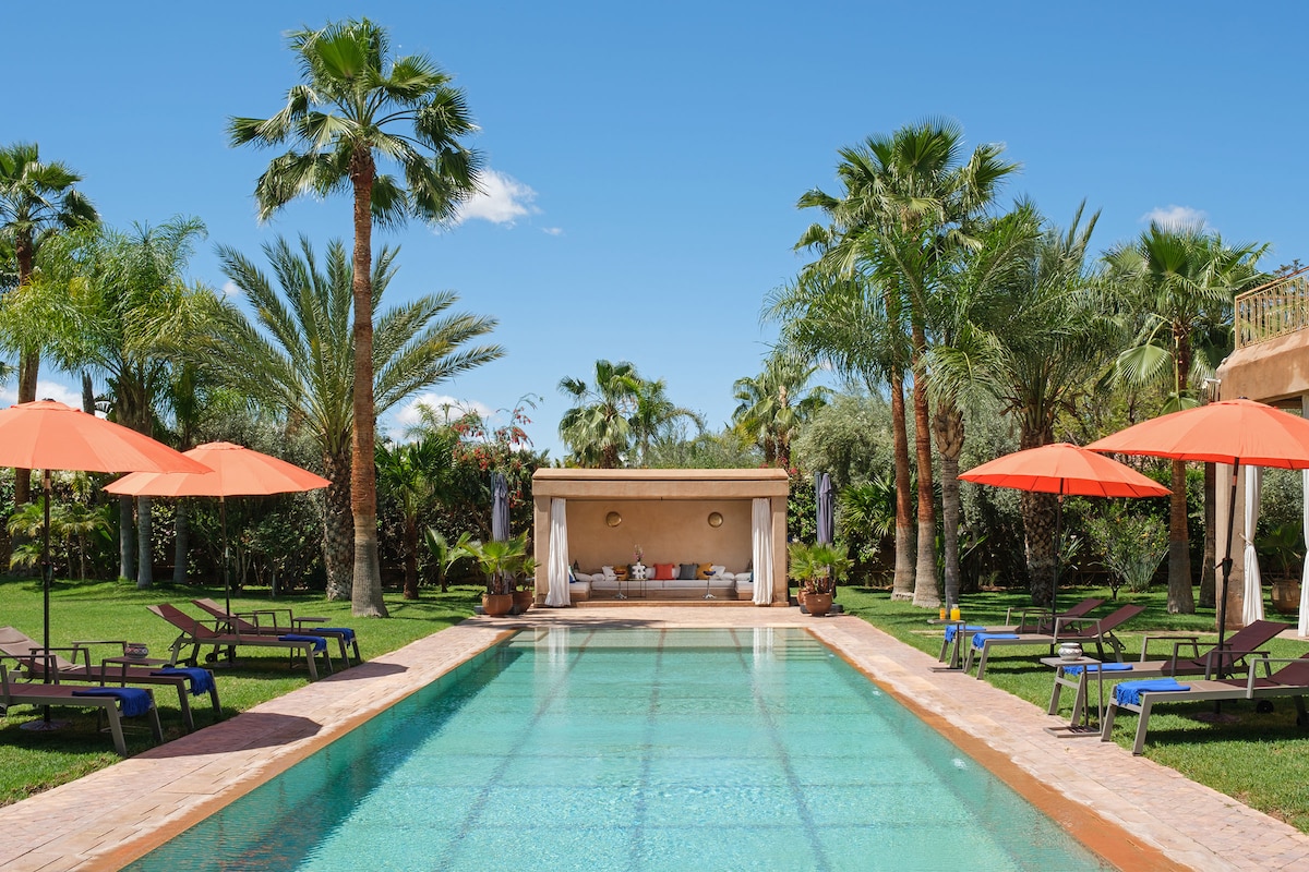 Villa Hilin is a peaceful and elegant 3-to-4-bedroom villa nestled in a private estate just outside Marrakech. With its lush garden, 18-meter pool, and private hammam, this 400 m² home offers an ideal setting for a relaxing holiday with family, friends, or couples. The villa accommodates up to 6 guests in 3 suites, and can welcome up to 8 guests with an extra charge for the 4th bedroom.