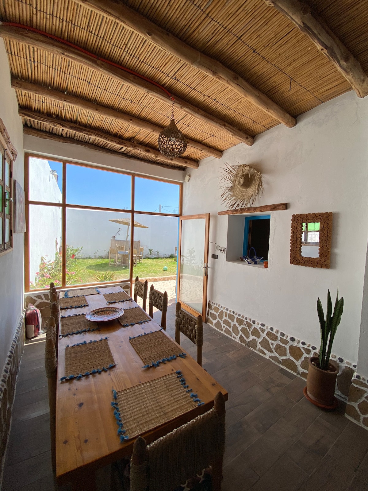 A charming home designed for total serenity, the ultimate full-service retreat for large families and groups of up to 12 guests. Enjoy a truly effortless stay with a dedicated housekeeper and a private cook present daily to care for you. Featuring 5 double rooms, child-friendly amenities, a private Tadelakt pool (heatable on request), and a sun-filled south-facing terrace sheltered from the wind, this peaceful haven offers authentic Moroccan hospitality just 15 minutes from Essaouira.