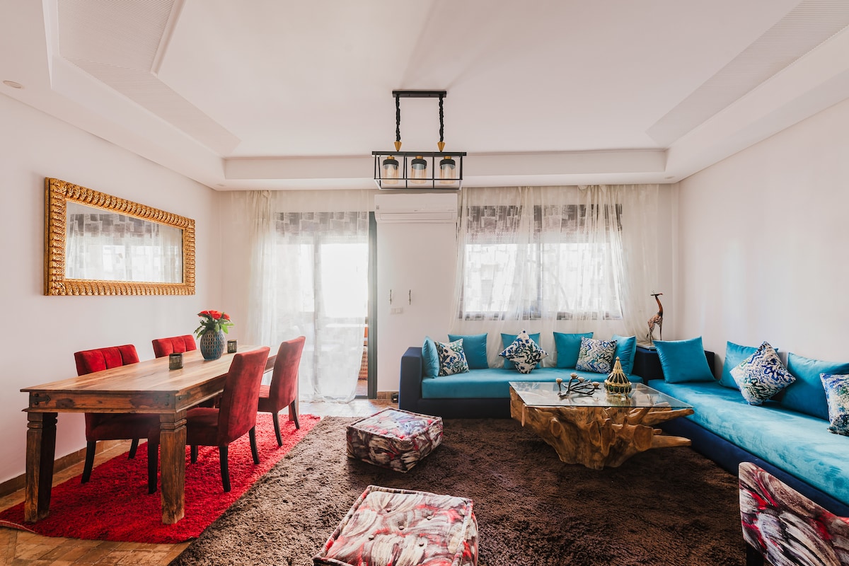位于盖利兹(Gueliz)的豪华2卧室公寓|游泳池、停车场、电梯